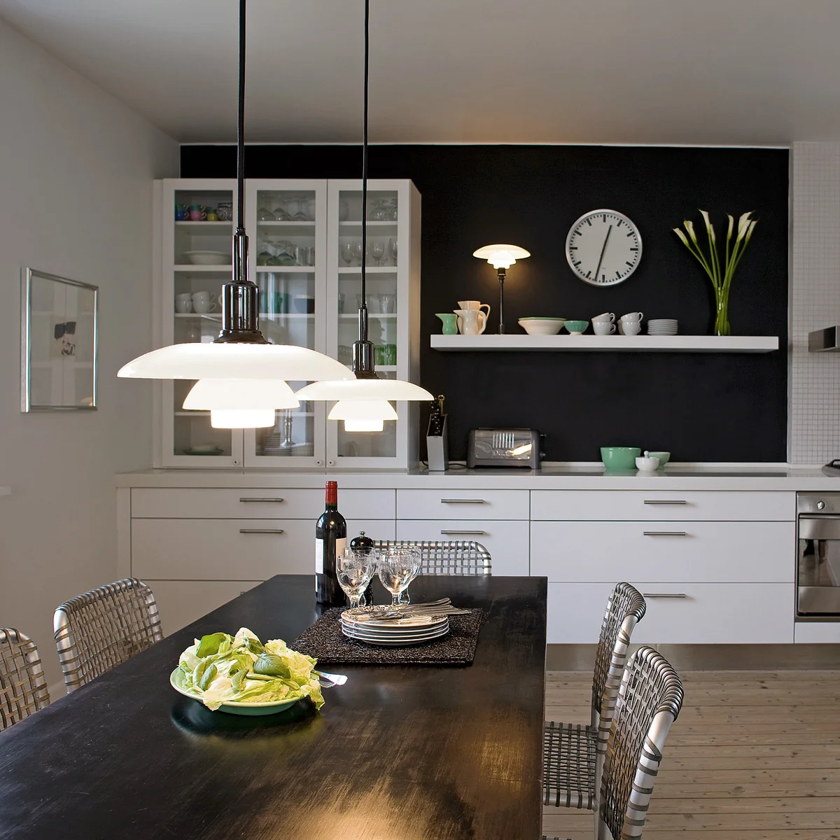 Un classique parmi les variantes est le luminaire suspendu PH 3/2. Il est basé sur le principe d'un système multi-écrans réfléchissant avec un éclairage sans éblouissement. La forme des abat-jour est basée sur une spirale logarithmique dans le point focal de laquelle la lampe est placée. Ainsi, le 3/2 génère un éclairage doux.