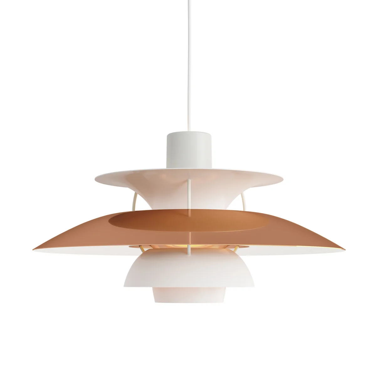 Le luminaire suspendu PH 5 fait partie de la famille de produits PH 3 à abat-jour. Le système d'abat-jour PH 3 était au départ une solution de luminaire suspendu, mais il a très vite évolué vers d'autres types de luminaires pour les tables, les sols, les murs et un grand nombre de lustres. En conséquence des différentes tailles, matériaux, surfaces et sources lumineuses, plus de mille variantes ont été développées au fil des ans.
