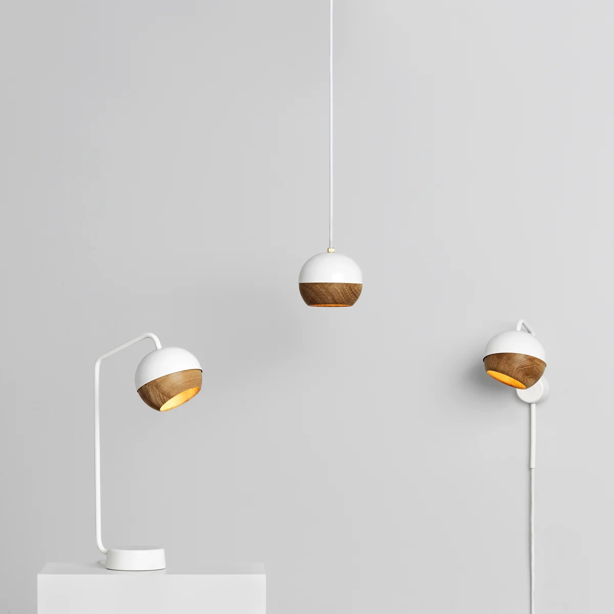 L’abat-jour se compose d’une boule en chêne entourée d'un revêtement en acier. Fixée par des aimants, la boule en bois peut être placée individuellement pour régler l’incidence de la lumière selon vos souhaits. Ainsi, la suspension lumineuse Ray diffuse de la lumière là où elle est souhaitée. Le rayon lumineux de la lampe disposée en grappe ou alignée peut être orienté vers le bas de manière classique ou dans des directions différentes.