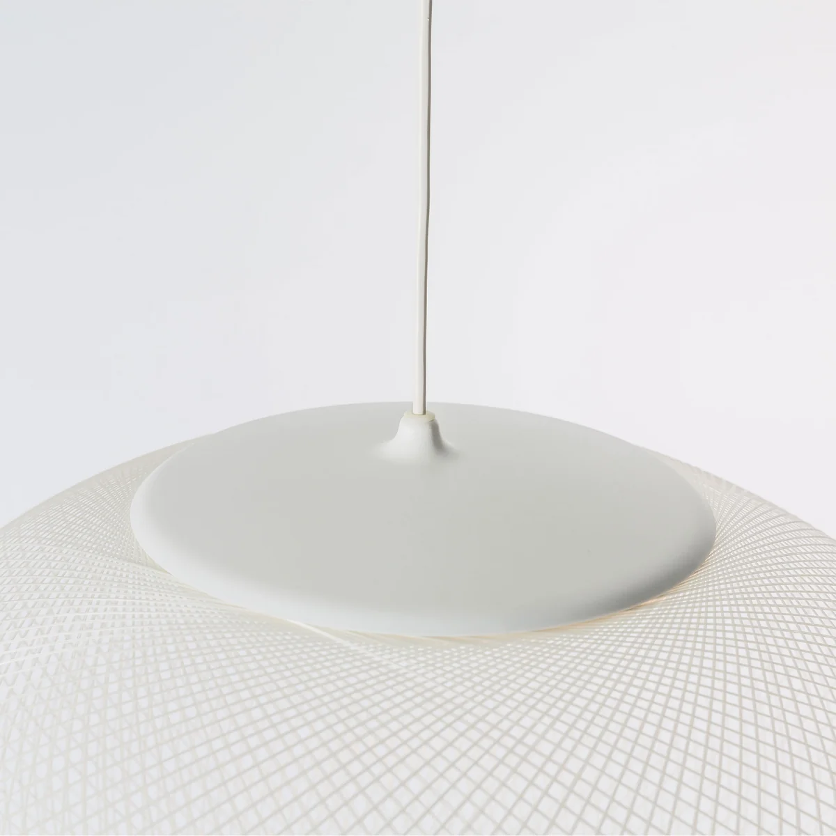 Par exemple, le corps semi-transparent de l'écran du luminaire suspendu à LED est constitué de fibres de verre préalablement imprégnées de résine époxy et enroulées autour d'un gros ballon. Les fibres de verre forment un filet fin et symétrique qui est si fin que la lumière blanche et chaude est diffusée dans la pièce comme dans un corps fermé.