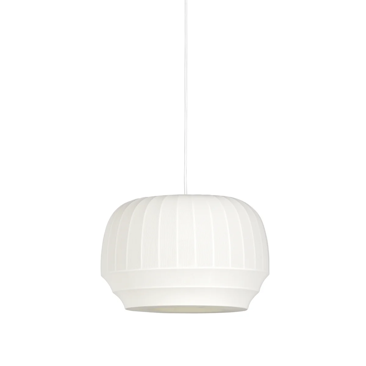 Dans la salle à manger, elle éclaire la table de la salle à manger et met en valeur la table dressée. Le corps rond ainsi que le design monochrome minimaliste complètent le décor et ajoutent une note chaleureuse et conviviale à l'intérieur. Son aspect finement tricoté s'adapte à tous les styles d'intérieur et peut être combiné de multiples façons.
