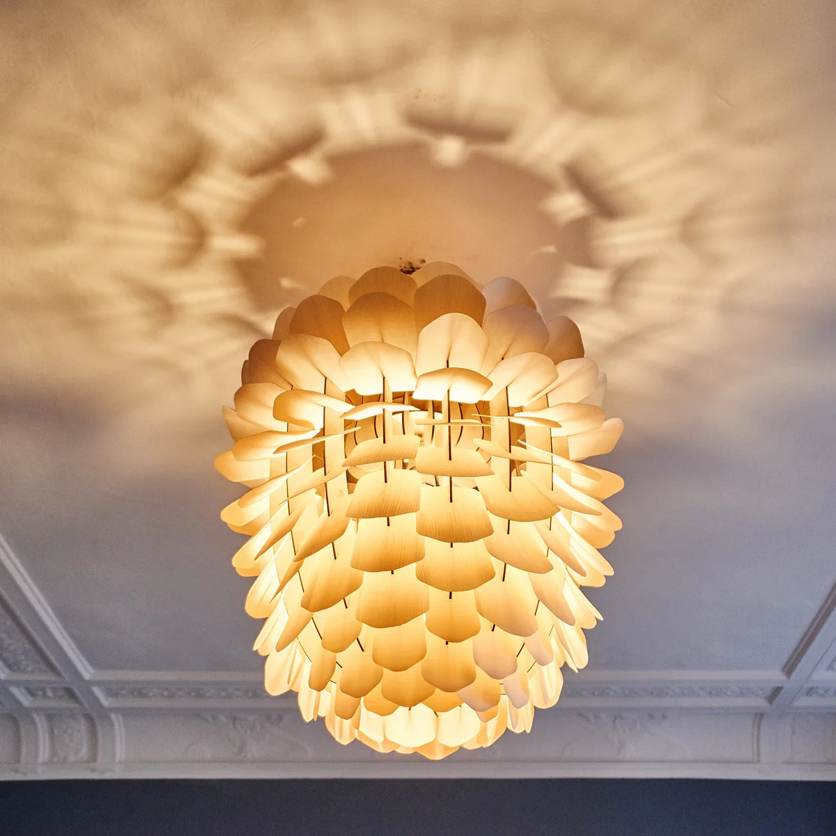 Inspirée des pommes de pin françaises, la suspension lumineuse Zappy a été créée en 2012. Zappy se caractérise par une importante efficacité lumineuse. Les lumières froides sont filtrées par le placage chêne de haute qualité, de manière à ce que chaque pièce bénéficie d'un magnifique éclairage et soit complémentée d'une touche de nature.
