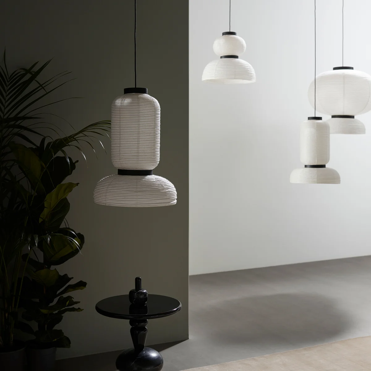 La suspension lumineuse conçue par le designer espagnol Jaime Hayon rappelle les lanternes de papier traditionnels d’Asie. Elles ont été la source d’inspiration du designer, qui a essayé de traduire le charme traditionnel de ces lampes dans une variante moderne. L'ensemble en papier de riz est mis en forme par des anneaux en bois de chêne. Le mélange des matériaux et la combinaison des textures naturelles donne à la suspension lumineuse un look particulièrement intemporel.