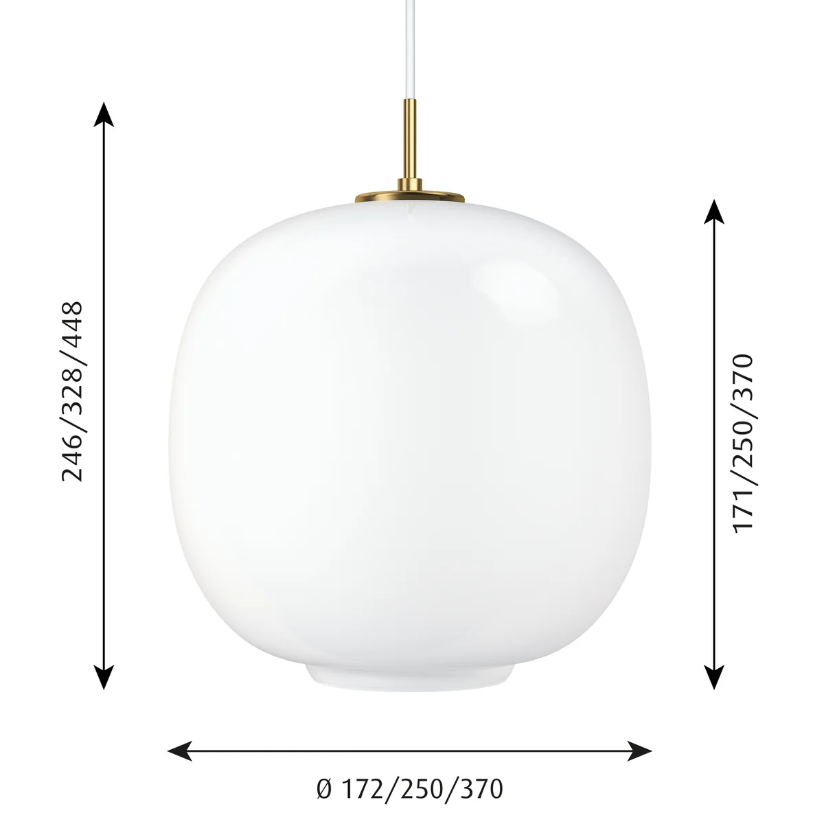 La suspension Radiohus est composée de trois couches de verre soufflé à la bouche. La couche intérieure est en verre transparent et clair, la couche centrale en verre blanc et la couche extérieure à nouveau en verre transparent et clair.