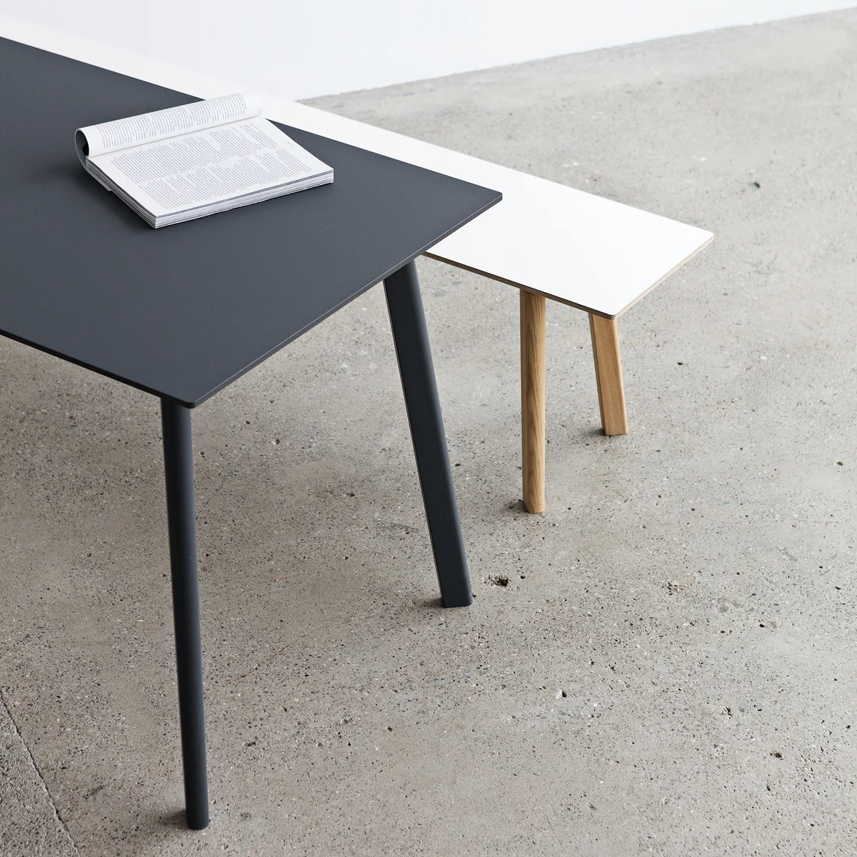 La particularité du banc de140 cm de long se trouve dans sa surface spéciale : Avec l’aide des dernières technologies nano, HAY a mis au point un stratifié, qui possède une surface soft touch mate, qui est non seulement extrêmement facile à entretenir, mais évite également les empreintes digitales sur le siège. Les quatre pieds sont réalisés en chêne laqué, procurant au banc son accent naturel.