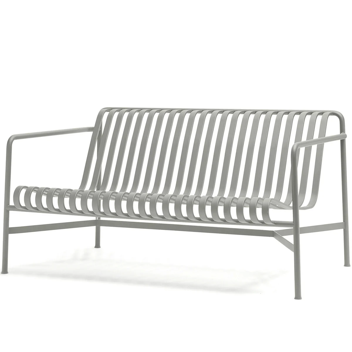 Avec la collection Palissade, les frères Ronan et Erwan Bouroullec ont créé une série de meubles de jardin qui convient parfaitement à l'extérieur. Comme tous les autres meubles de la série, le canapé est constitué d'une surface rainurée en lattes d'acier revêtues par poudre. L'avantage est que l'eau de pluie s'écoule facilement à travers les rainures et ne s'accumule pas en une flaque.
