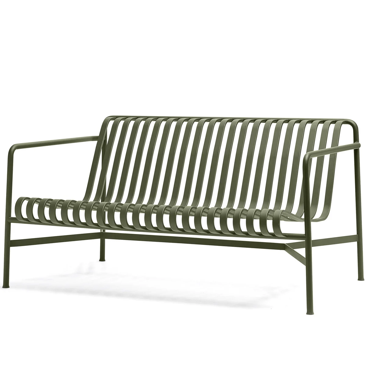 Avec la collection Palissade, les frères Ronan et Erwan Bouroullec ont créé une série de meubles de jardin qui convient parfaitement à l'extérieur. Comme tous les autres meubles de la série, le canapé est constitué d'une surface rainurée en lattes d'acier revêtues par poudre. L'avantage est que l'eau de pluie s'écoule facilement à travers les rainures et ne s'accumule pas en une flaque.
