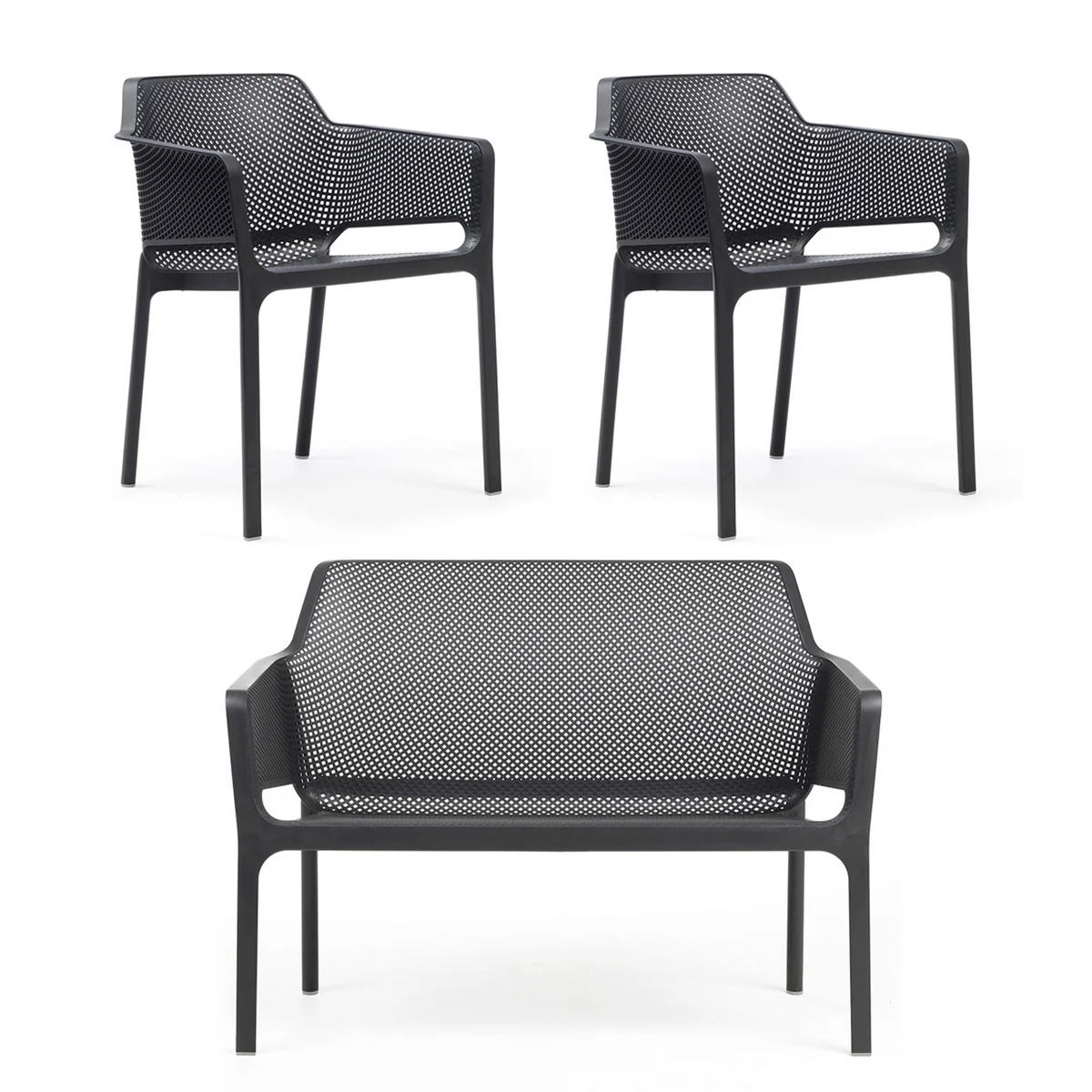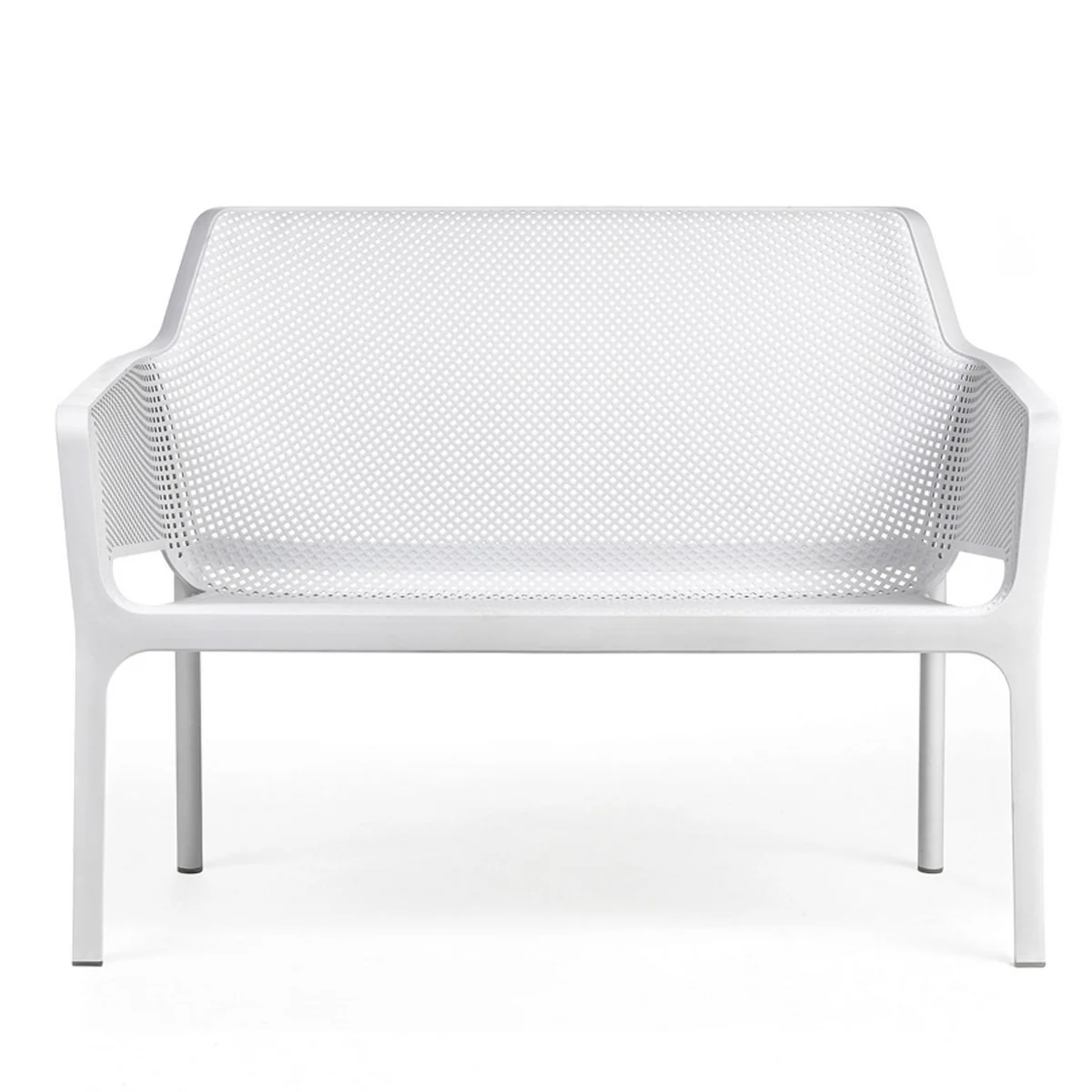 Sur le Net de Nardi , vous pouvez passer des heures de détente au soleil dans le jardin. Avec une longueur de 116 cm, le banc peut accueillir deux personnes en toute décontraction et assure un confort maximal grâce aux accoudoirs. Le banc est fabriqué en fibre de verre-polypropylène teinté dans la masse et recyclable, qui est résistant et convient parfaitement à une utilisation en extérieur. Le matériau résiste aux UV et est pourvu de perforations en forme de losange qui permettent à l'eau de pluie de s'écouler facilement. En même temps, le dos est aéré, ce qui est particulièrement avantageux lorsqu'il fait chaud.