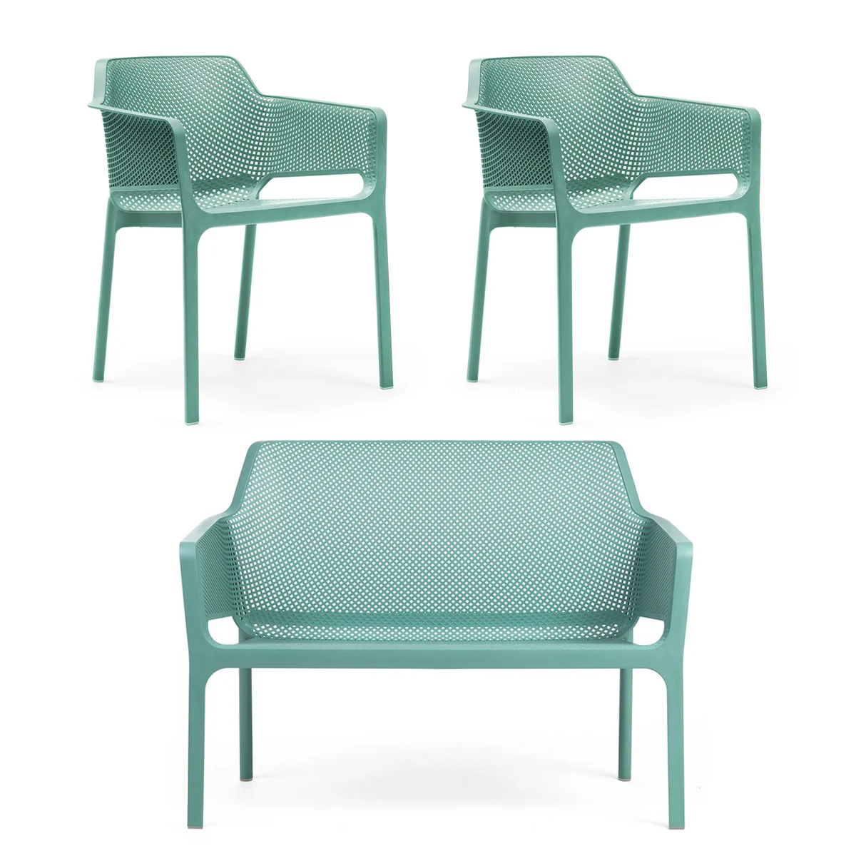 La chaise à accoudoirs Net conçue par Raffaello Galiotto est disponible en différentes couleurs à effet mat, qui se combinent parfaitement entre elles ainsi qu'avec d'autres meubles de jardin de Nardi . Les coussins assortis sont disponibles séparément.