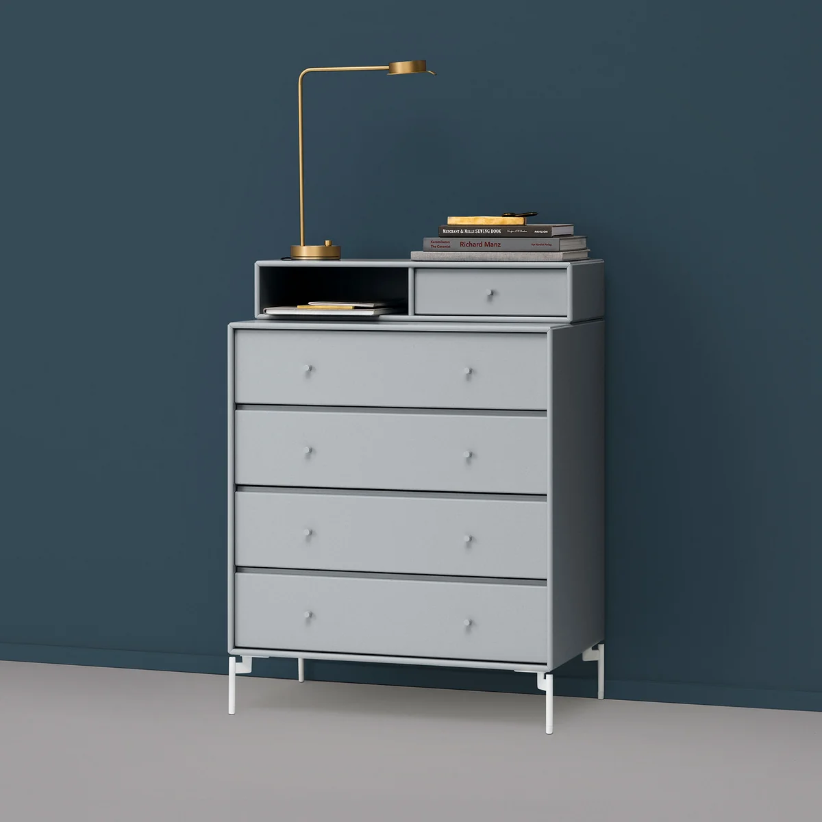 La commode Keep de Montana est une commode classique pour les bijoux et les vêtements, conçue par Peter J. Lassen. La commode d'une hauteur d'environ 95 cm s'intègre parfaitement dans la chambre à coucher, le salon ou le couloir. Elle offre suffisamment de place dans quatre grands tiroirs, un petit tiroir sur le plateau et un petit compartiment ouvert pour les hauts, les pantalons, les serviettes, les bijoux et bien plus encore.