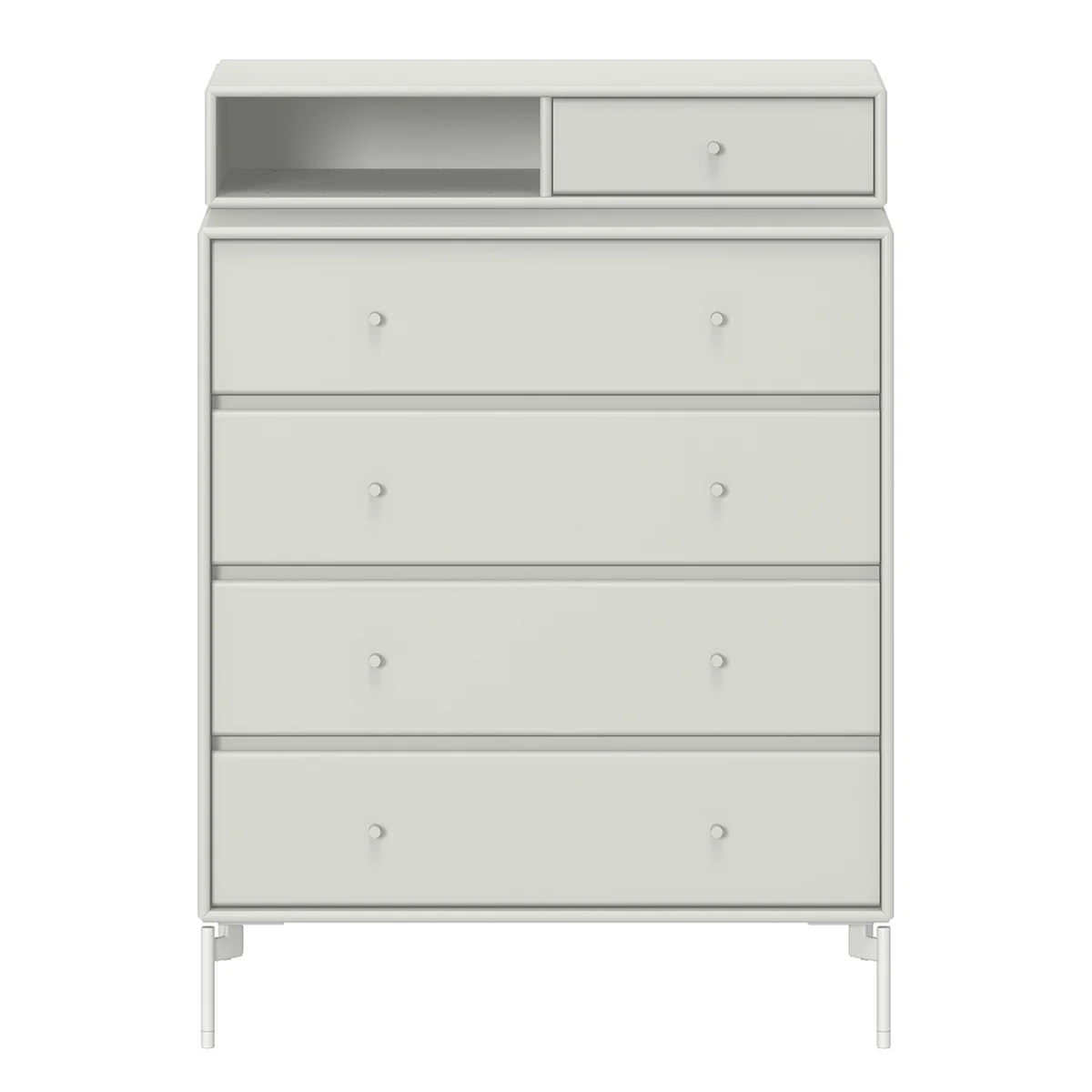 La commode Keep de Montana est une commode classique pour les bijoux et les vêtements, conçue par Peter J. Lassen. La commode d'une hauteur d'environ 95 cm s'intègre parfaitement dans la chambre à coucher, le salon ou le couloir. Elle offre suffisamment de place dans quatre grands tiroirs, un petit tiroir sur le plateau et un petit compartiment ouvert pour les hauts, les pantalons, les serviettes, les bijoux et bien plus encore.