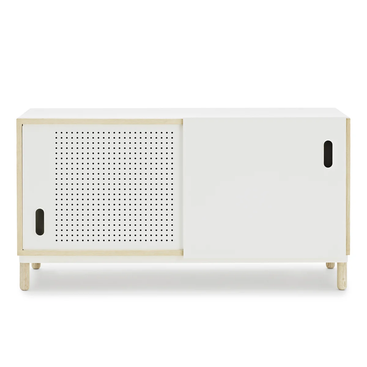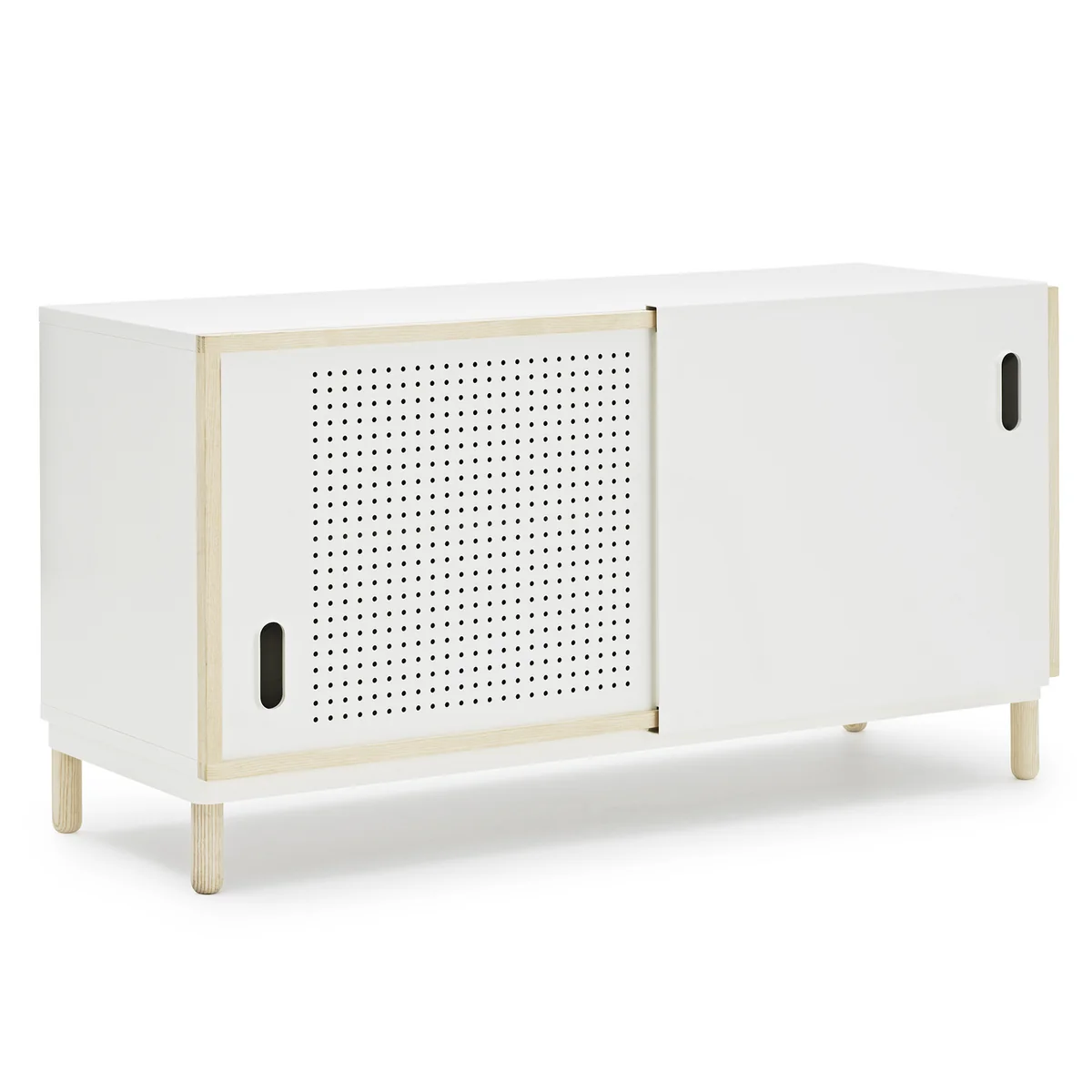 Kabino est un buffet simple, polyvalent avec un look exclusif, conçu par Simon Legald. Une des deux portes coulissantes est travaillé comme plaque en tôle élégant, tandis que le châssis en frêne donne le buffet l'aspect doux et chaud. Kabino s'intègre très bien dans les plus des styles de décoration.