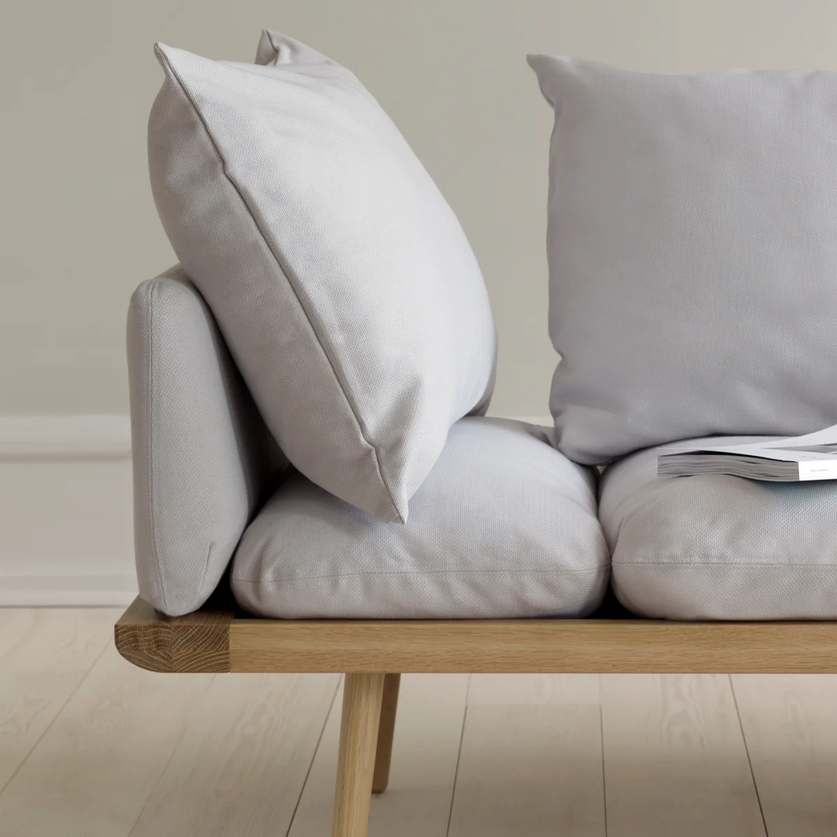Une combinaison spéciale de couches de mousse dans les coussins d'assise permet d'obtenir un canapé très confortable. Lounge Around est très confortable malgré son design minimaliste. Sa forme simple et sa faible profondeur le rendent idéal pour les petits appartements et les pièces à vivre.