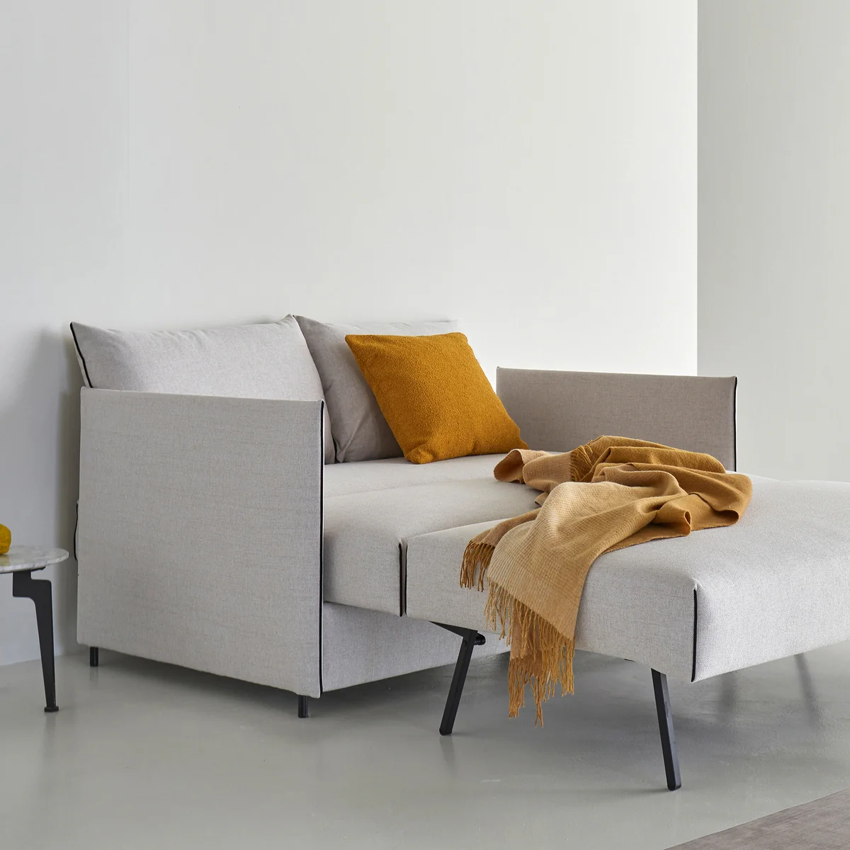 Le canapé-lit Luoma a été conçu par Per Weiss pour Innovation Living et convainc par son design clair et moderne. Il ne prend que peu de place au quotidien et se transforme en couchage confortable lorsqu'il est déplié - idéal pour les habitations flexibles.