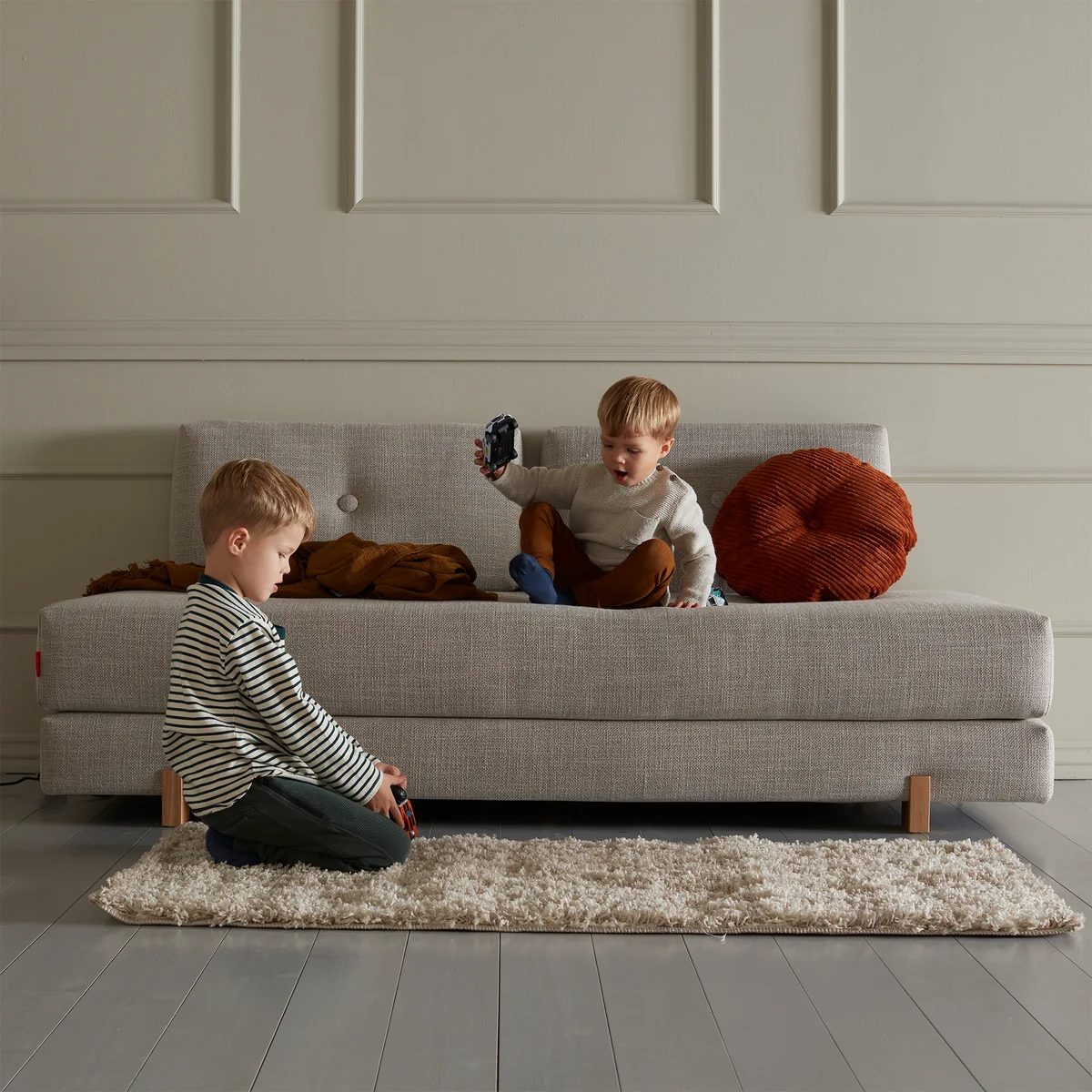 Le canapé-lit Sigmund Drip de Innovation Living est un véritable multitalent. En quelques gestes, il se transforme du canapé-lit classique en un lit double ou en deux lits simples séparés - idéal pour les habitations flexibles. Les matelas Pocket-Spring arrondis peuvent être disposés de différentes manières et offrent un grand confort en position assise comme en position couchée. Deux coussins mobiles complètent le design et assurent un soutien et un confort supplémentaires.