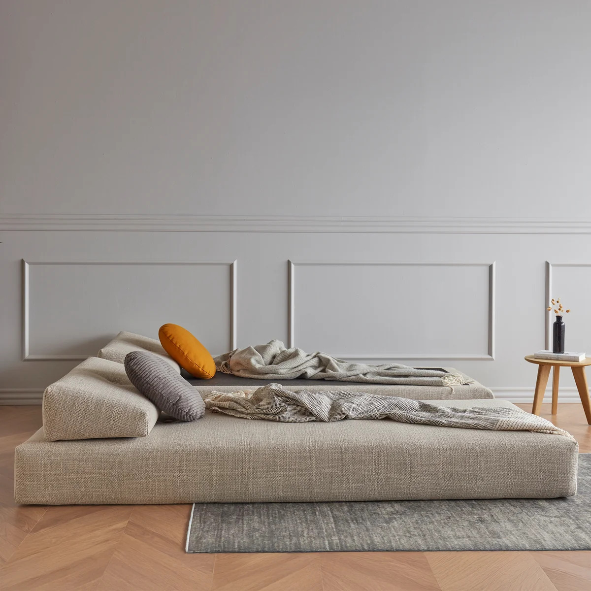 - Transformation du canapé-lit en lit double ou en deux lits simples.