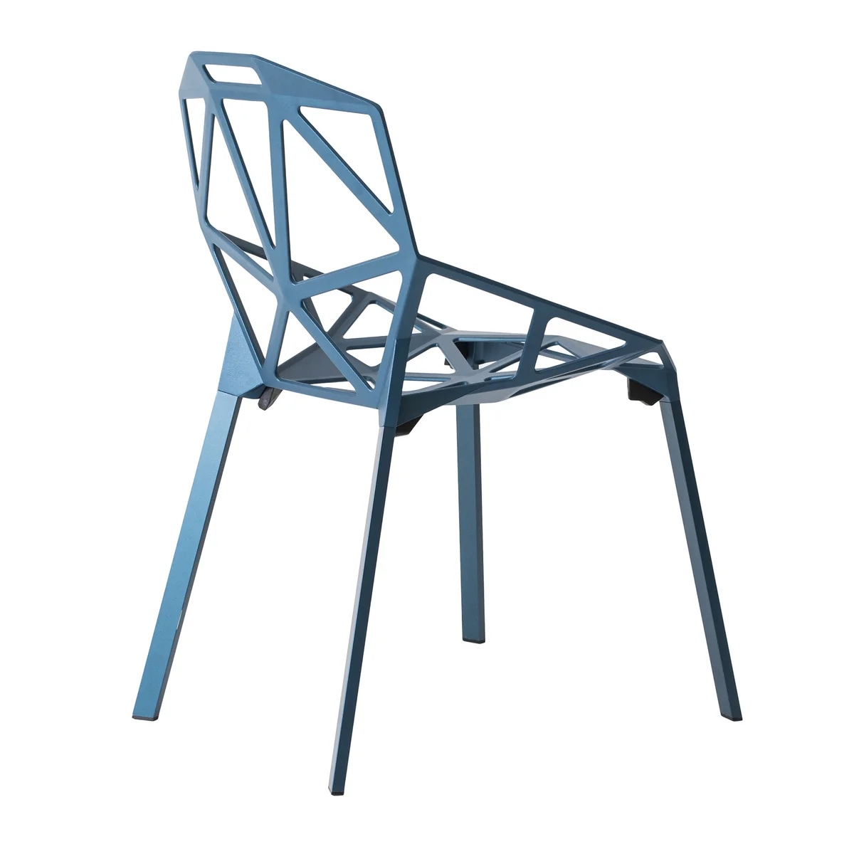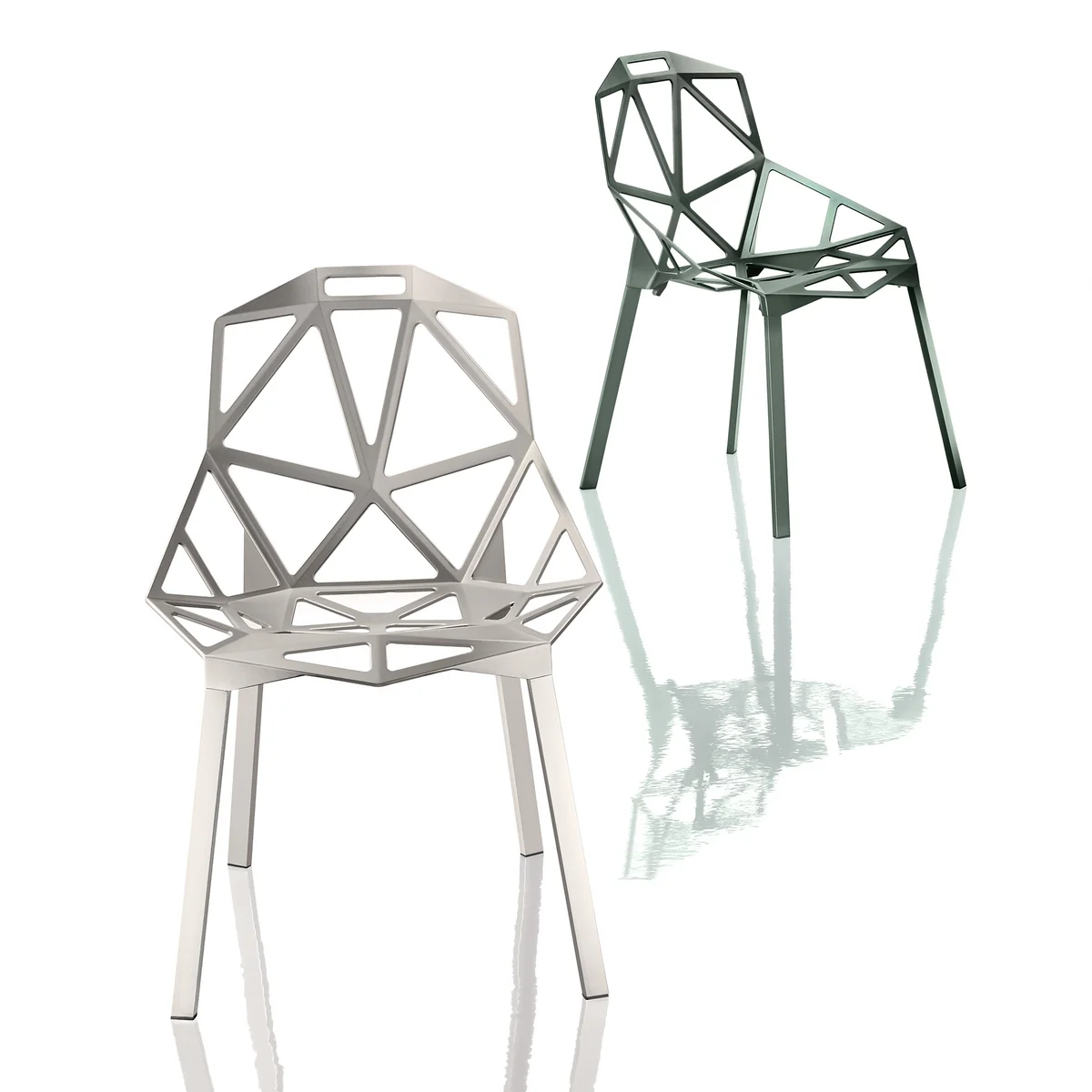 Chair One n'est cependant pas un simple siège avant-gardiste. La chaise est une combinaison de matériaux, de formes et de fabrication industrielle. Elle est traitée contre la rouille et ignifugée, ce qui la prédestine aux zones sensibles et à l'utilisation en extérieur. Pour la première fois, Grcic a utilisé pour l'assise complète d'une chaise de l'aluminium moulé sous pression, dont la surface est en outre traitée au titane fluoré et recouverte d'un vernis polyester. Pour les pieds de la chaise, il a choisi de l'aluminium anodisé.