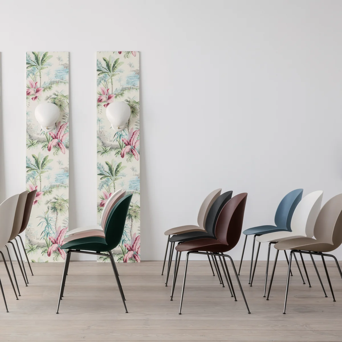La chaise Beetle Dining Chair de GamFratesi pour Gubi est une chaise aux possibilités illimitées. Conçue à l'origine comme une chaise rembourrée, la version non rembourrée avec des coques en polypropylène donne à la chaise une expression légère et fraîche. Le duo de designers s'est inspiré du monde des insectes. Le design de la chaise s'inspire des caractéristiques typiques d'un scarabée (angl. beetle ).