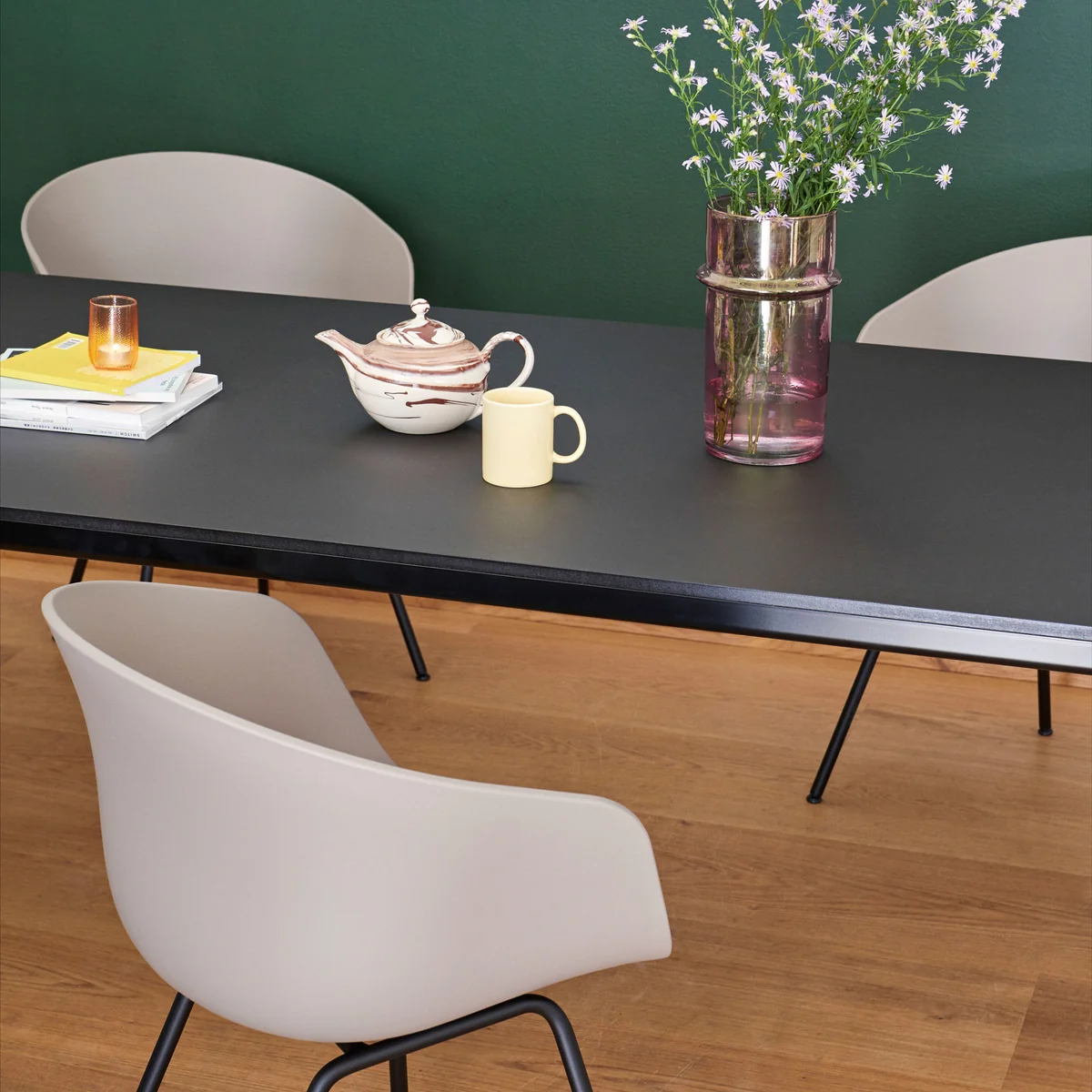La chaise est disponible dans une grande variété de couleurs de coque et de finitions de base, ainsi qu'avec un rembourrage frontal et d'assise ou un rembourrage intégral en option. Grâce aux nombreuses possibilités d'aménagement, elle peut être utilisée de manière flexible dans les espaces privés et publics. Outre la AAC 26 d'autres chaises de salle à manger et de conférence avec ou sans accoudoirs, des chaises de bureau, des tabourets de bar, des lounge chairs, des tables, un ottoman et un canapé font partie de la série de Hee Welling. Les autres options de base sont : Pied pivotant, empattement, pied traîneau, pieds en bois massif et pieds en bois moulé.