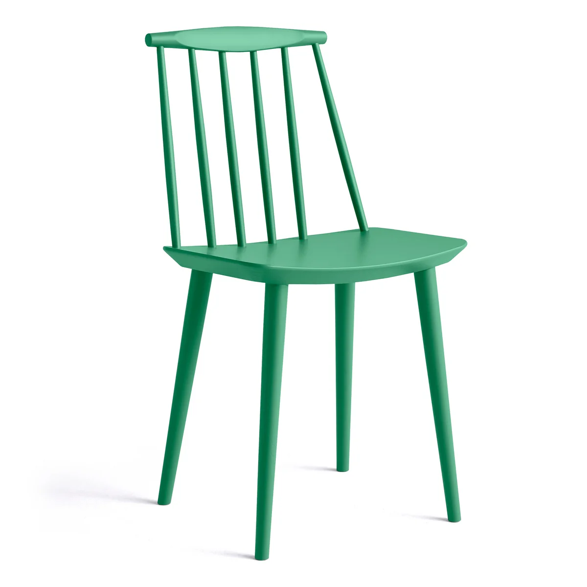 La fabrication en bois de hêtre et la forme élancée des tiges au niveau du dossier confèrent à la J77 Chair de HAY une impression à la fois légère et massive. La large assise rend le J77 confortable, tandis que son design classique et minimaliste lui permet de s'intégrer dans des environnements très différents.