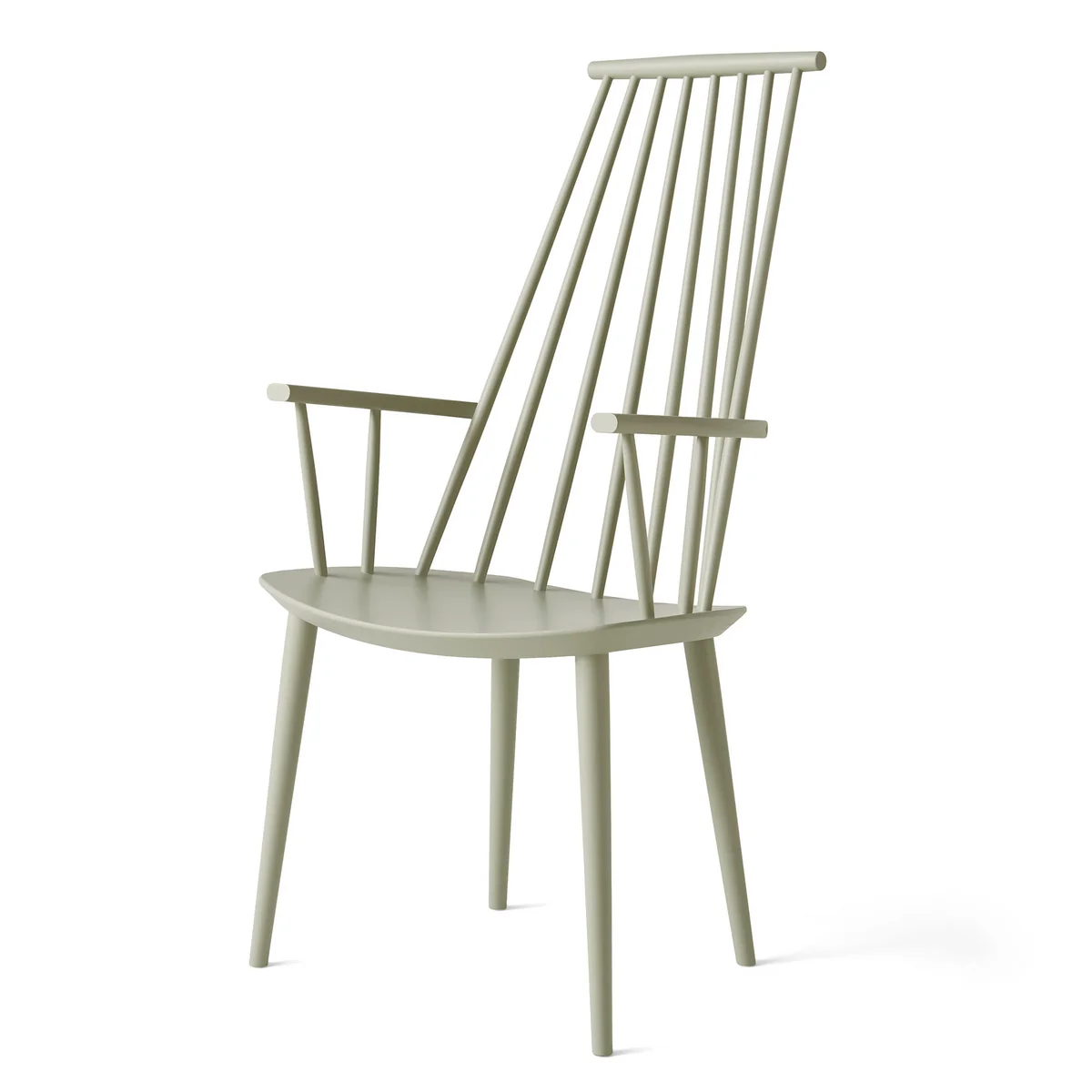 HAY fabrique le J110 Chair du bois de hêtre. Avec une hauteur d'assise de 44,5 cm, le J110 de HAY est parfait pour la table à manger, tandis que son dossier haut fait l'effet d'un fauteuil: : L'assise large et le dossier haut donnent au J110 un niveau de confort inhabituellement élevé pour les chaises de table à manger.