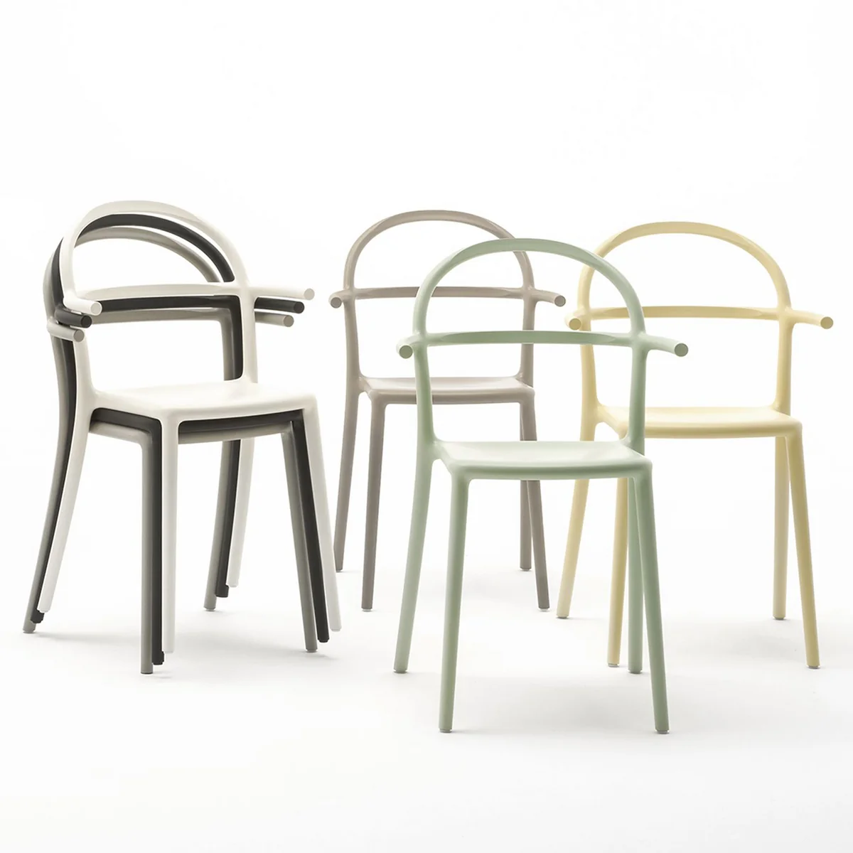 La chaise est fabriquée en polypropylène en différents coloris. Cela la rend légère, facile à transporter et extrêmement flexible : elle s'adapte non seulement visuellement au type de pièce mais elle peut être placée partout où le besoin s'en fait sentir. Quand la Generic C n'est pas utilisée ou quand il faut faire de la place, la chaise légère peut être facilement empilée. Jusqu'à 5 chaises peuvent être empilées et ainsi rangées avec le moins d'encombrement possible.