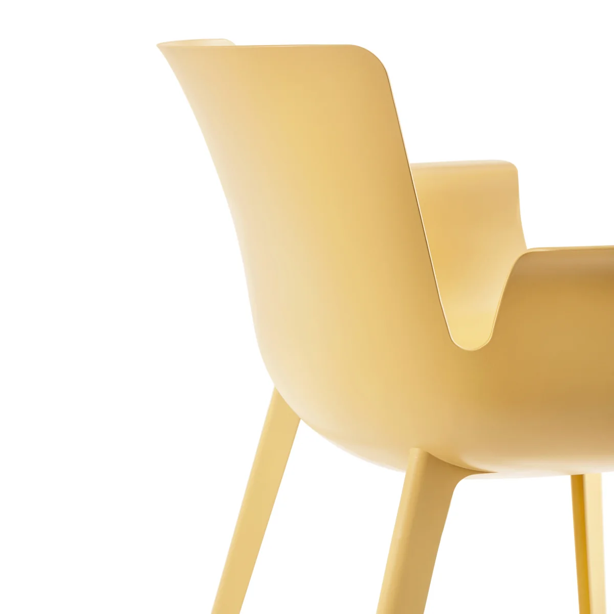 La chaise à accoudoirs Piuma de Piero Lissoni pour Kartell est composée de polymère thermoplastique avec renforcement en fibres de carbone et est disponible en différentes couleurs.