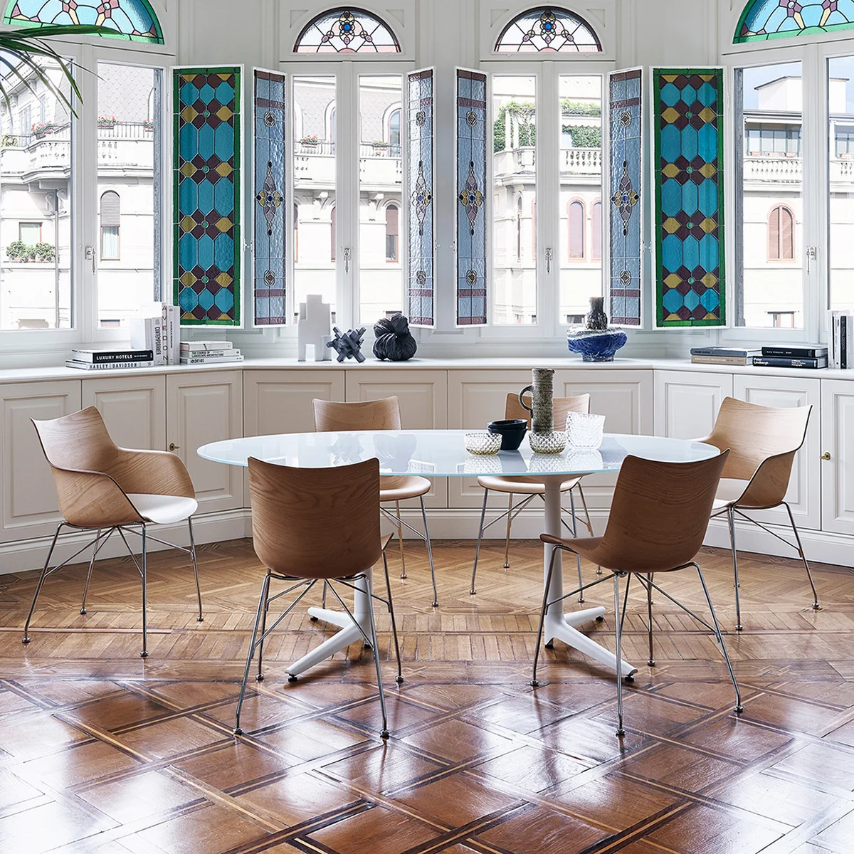 "Avec la collection Smart Wood, nous avons déplacé le paradigme. Il ne s'agit plus de construire la structure avec des éléments en bois, mais le bois lui-même se plie et devient un siège tridimensionnel". Claudio Luti ( Kartell -Président)