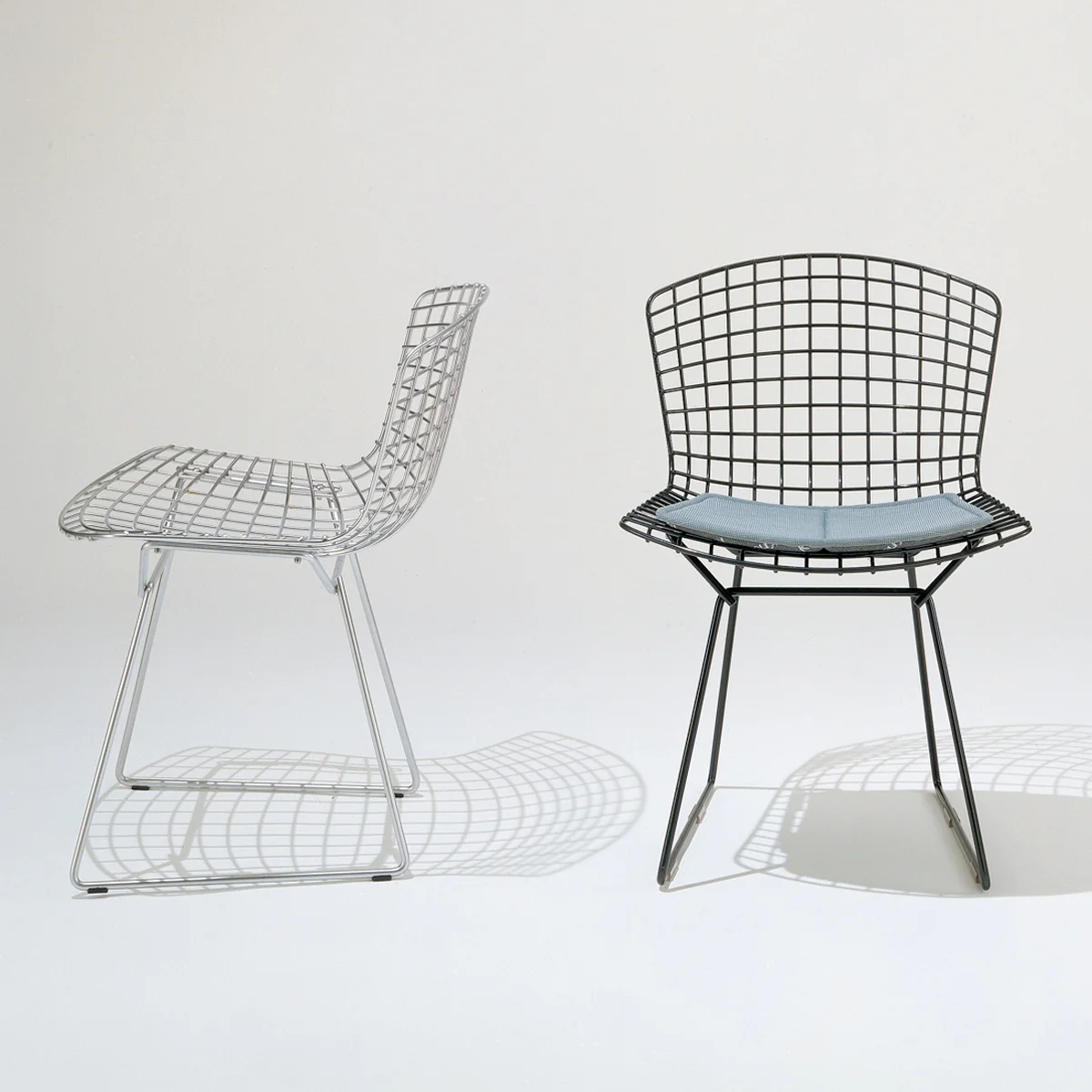 Au début des années 50, le designer Harry Bertoia a conçu une série de sièges à structure en acier, "composés principalement d'air" selon le designer lui-même. La chaise Bertoia et Diamond Char sont les plus connues de ces créations. Élevées depuis au rang de classiques du design, ces créations sont emblématiques du design innovant des années 50 et de leur inventeur : Harry Bertoia .