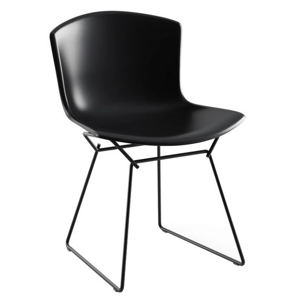 La chaise Bertoia est fabriquée en fil d'acier, étiré et soudé à la main selon un procédé très complexe. Grâce à ce matériau industriel et à sa forme fluide, la chaise Bertoia ressemble à une œuvre d'art sculpturale, dont la silhouette filigrane semble faire oublier la solidité et la stabilité de la construction.