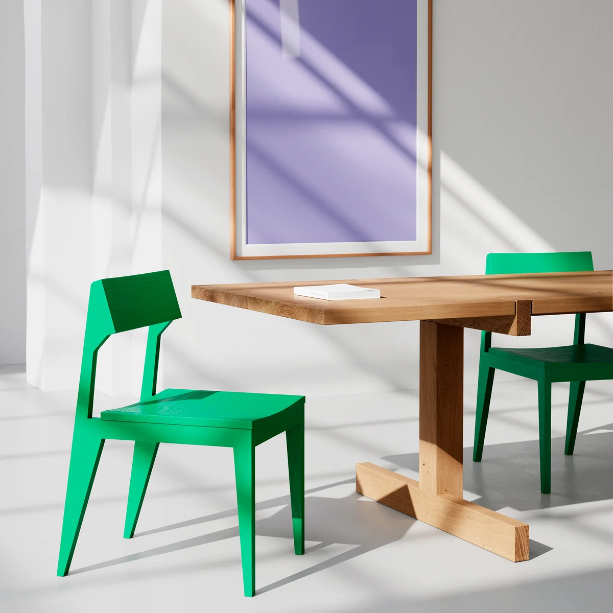 La chaise Schulz chaise est une création d'Anton Rahlwes pour le fabricant berlinois OUT Objekte unserer Tage et se caractérise par l'union de l'artisanat traditionnel et du design moderne. La chaise est fabriquée en bois, travaillé à la main dans des ateliers sélectionnés. De la conception à la fabrication, l'ensemble du processus de développement du meuble a lieu en Allemagne et répond ainsi aux exigences de qualité les plus élevées avec la promesse 'Made in Germany'.