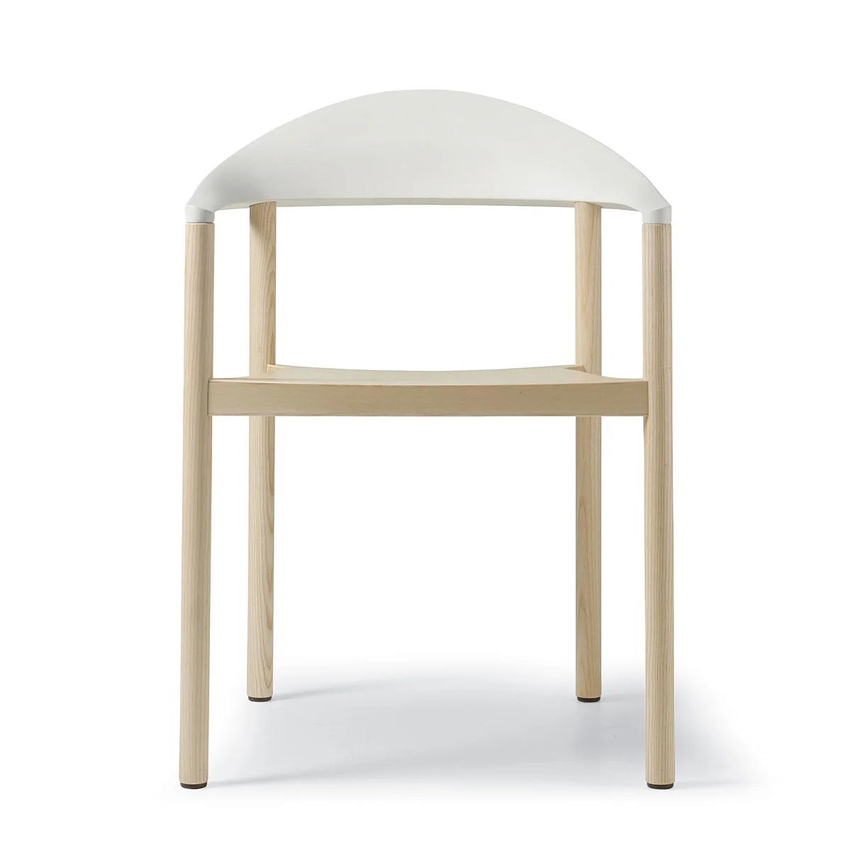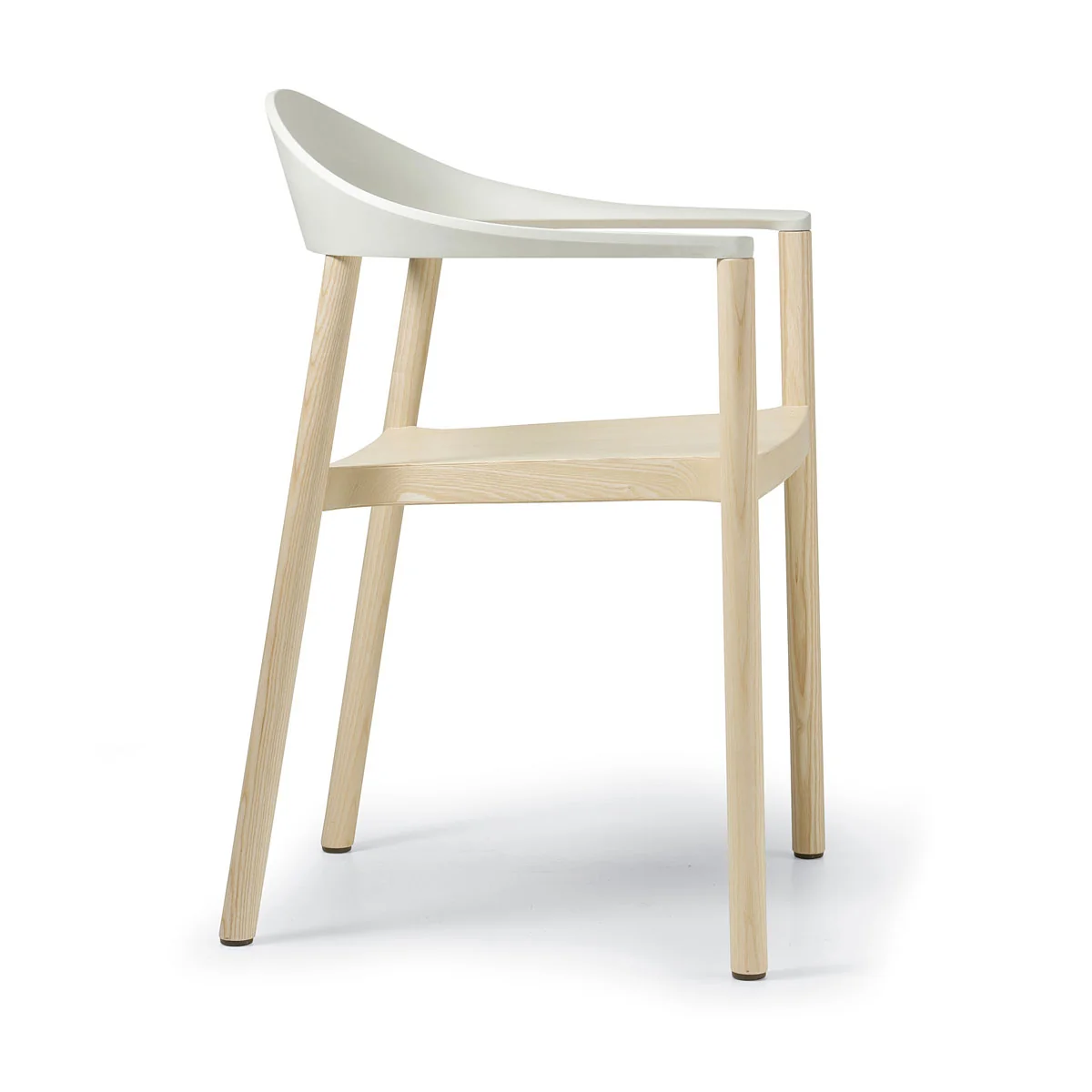 Caractéristiques techniques : chaise avec accoudoirs, structure avec finition en frêne naturel verni ou frêne noir ou teinté Wengé. Le dossier en polypropylène dans les couleurs noir, blanc, rouge, rouge trafic, rouge vin, bleu clair, jaune-vert. empilable