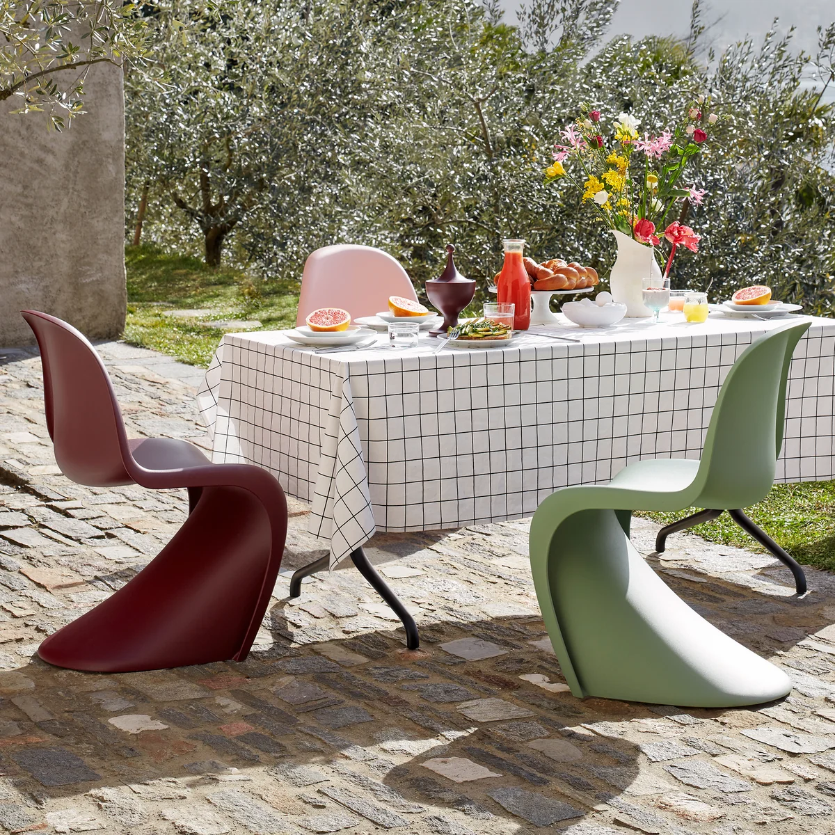 La chaise actuelle Panton Chair de Vitra convainc par de nombreuses caractéristiques qui la rendent particulière : Elle peut supporter jusqu'à 120 kg et est donc extrêmement stable, avec un faible poids propre. La chaise à piétement luge est donc sans aucun doute adaptée aux espaces et aux usages les plus divers, que ce soit comme chaise de salle à manger ou pour l'extérieur, où elle peut servir de chaise de jardin moderne.