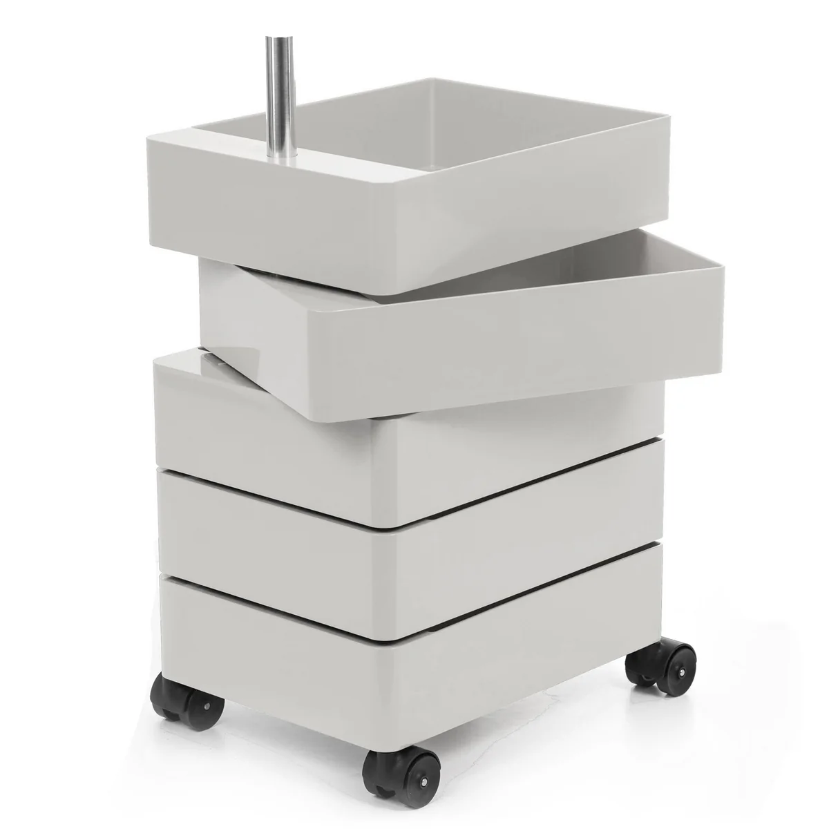 Le caisson 360° a été conçu par Konstantin Grcic en même temps que la chaise du même nom pour le fabricant italien Magis . L'idée derrière ce caisson à tiroirs est de promouvoir le travail dynamique. Les différents tiroirs peuvent pivoter autour de 360° et peuvent être utilisés de n'importe quel côté.