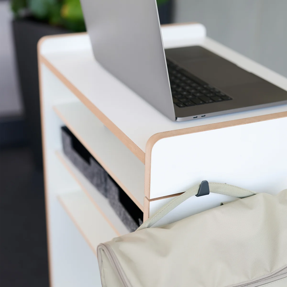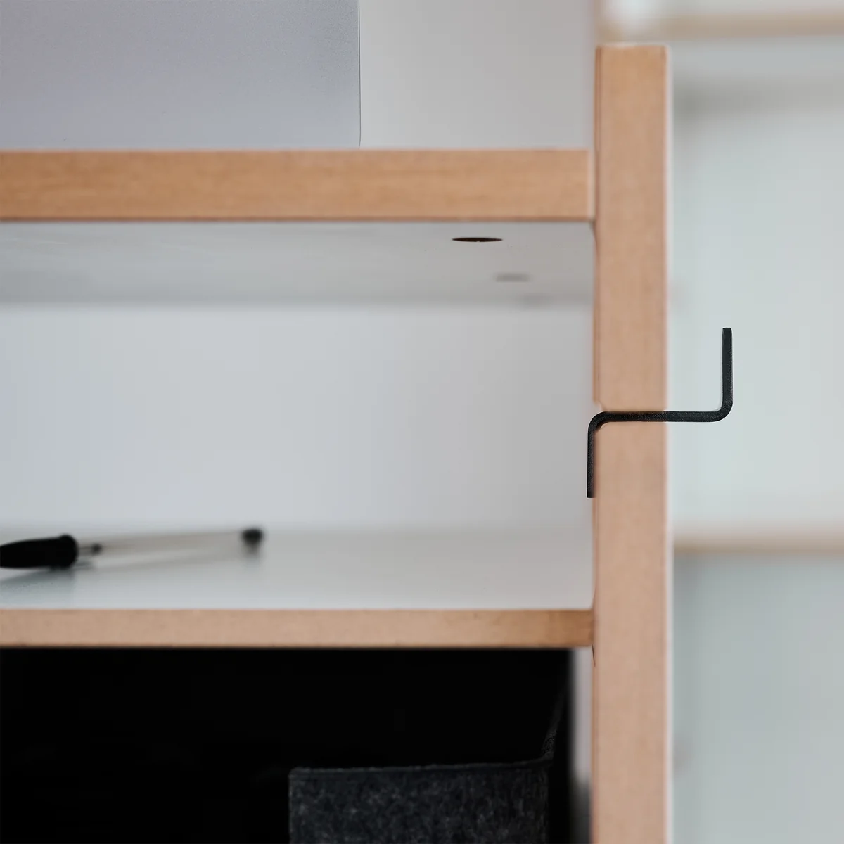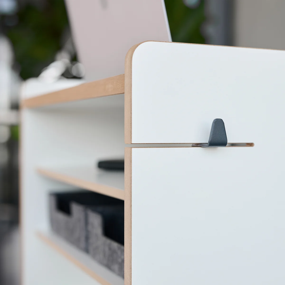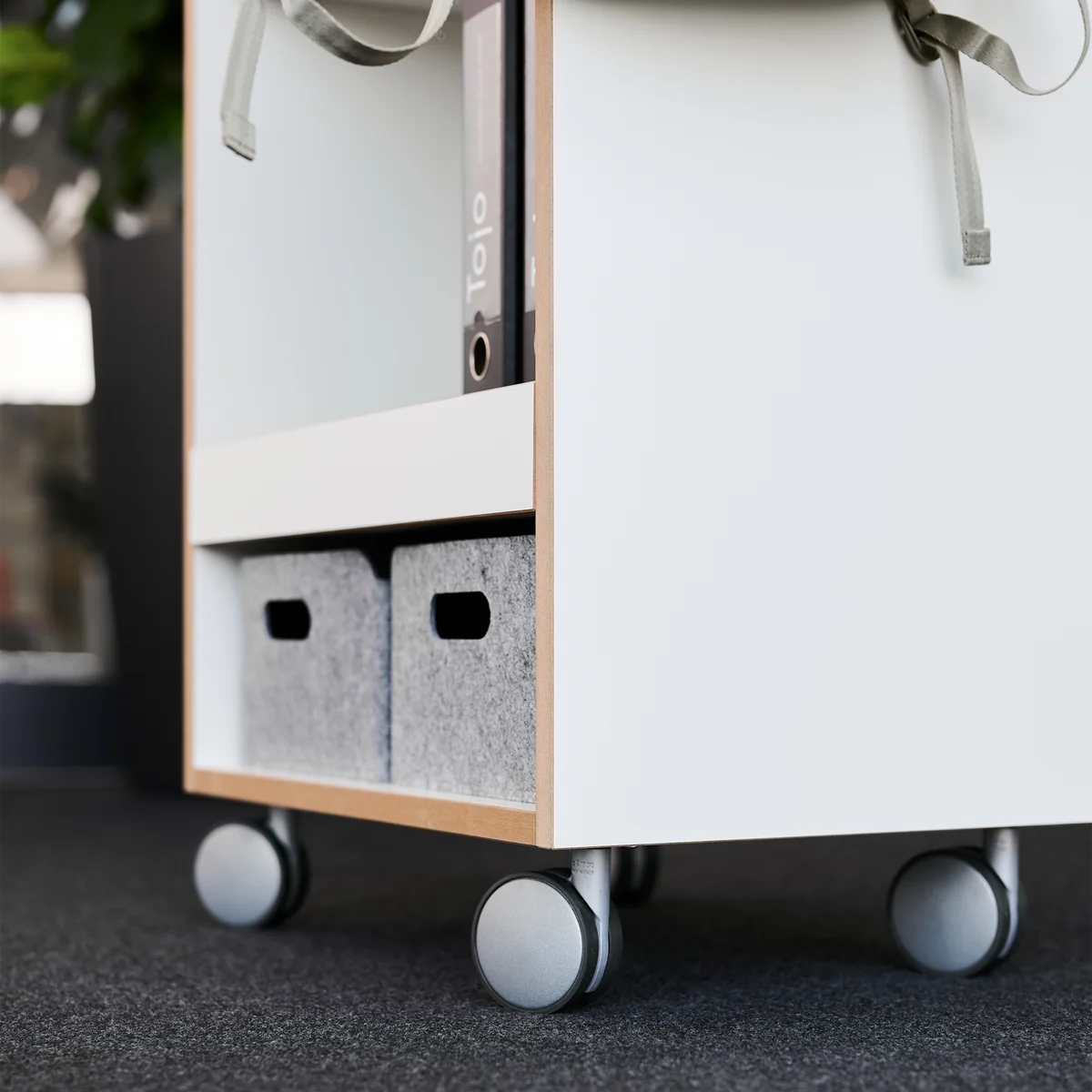 Son design bien pensé offre de nombreuses possibilités de rangement, notamment des compartiments pour des paniers, des caisses ou des boîtes, ainsi qu'un crochet latéral pour les torchons, les câbles ou les écouteurs. Disponible en plusieurs versions - avec trois compartiments ou un compartiment et un insert pour bouteilles - le Tojo - peut être - adapté à vos besoins. fahrbar s'adapte individuellement et peut être complété par des boîtes en feutre en option.