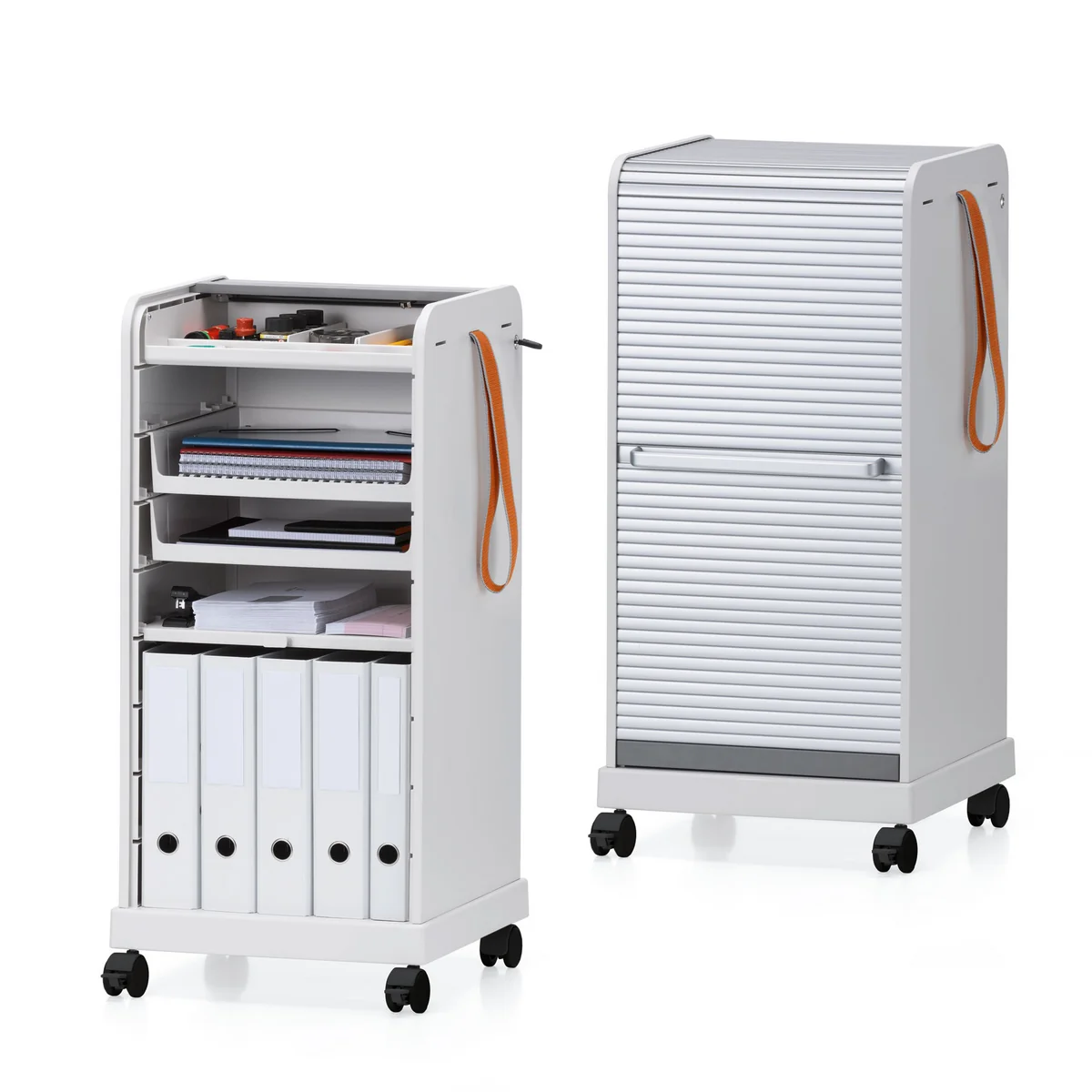 Le conteneur Follow Me est un chariot robuste - tant pour le bureau qu’à la maison. Plusieurs dossiers trouvent place dans le compartiment inférieur et au-dessus, dans le rangement, crayons, documents et effets personnels peuvent être rangés. Plateaux à stylos, tiroirs et étagères peuvent être ajoutés optionnellement pour faire correspondre le chariot individuellement à vos besoins. Si nécessaire, le porte roulante verrouillable fait disparaître toutes choses.