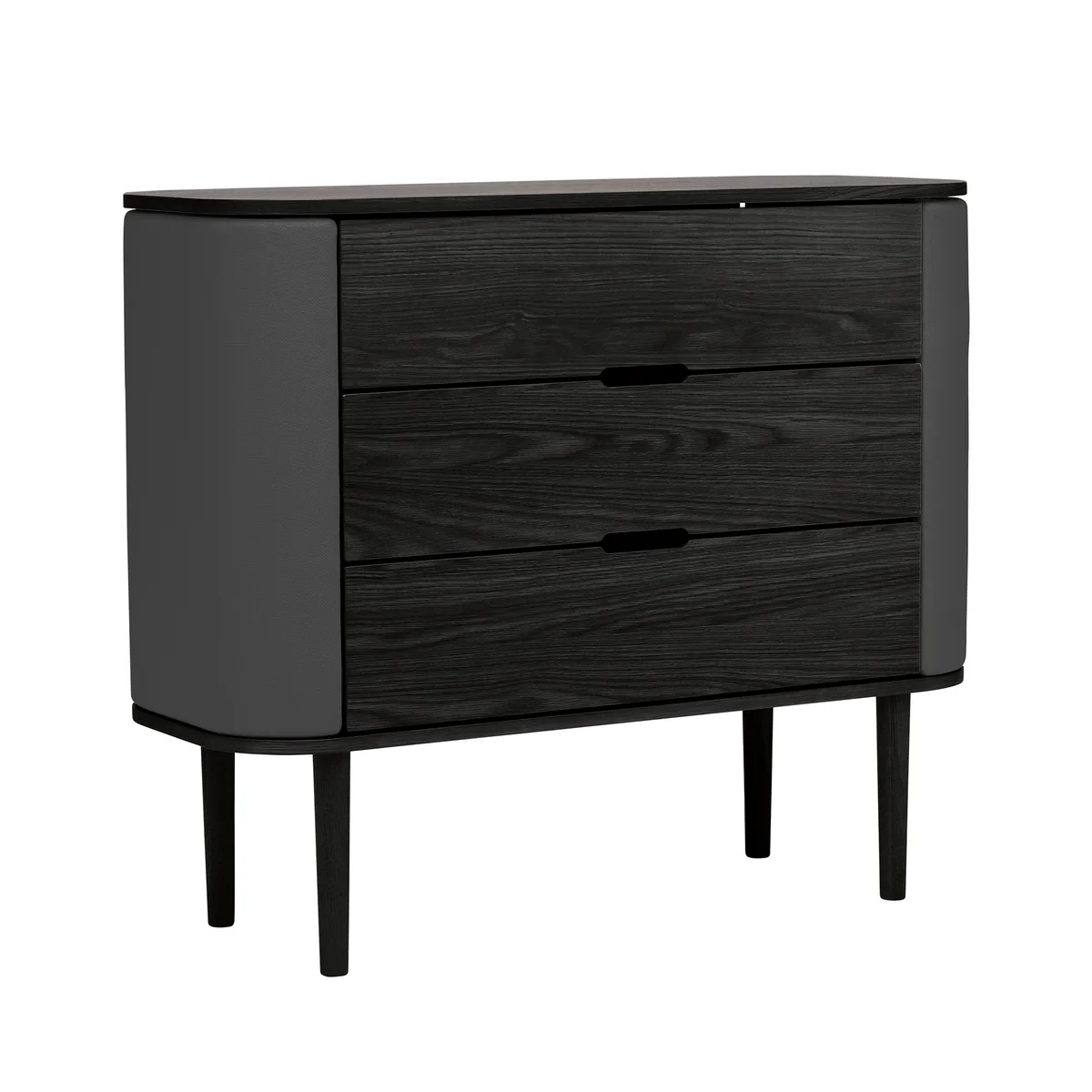 La Treasures commode de Umage , conçue par Jonas Søndergaard, allie la simplicité scandinave à une fonctionnalité raffinée. Les caractéristiques de la Treasures -collection sont les côtés légèrement arrondis qui confèrent au meuble une silhouette harmonieuse et douce. Les portes battantes sur les côtés s'ouvrent élégamment et offrent de la place pour les objets personnels, les bijoux ou les petits accessoires. Disponibles au choix en Venetian Cane ou en textile 100 % recyclé, les surfaces apportent des accents naturels ou texturés. Trois tiroirs spacieux, intégrés sans joints, assurent un rangement ordonné - que ce soit pour les vêtements, la vaisselle ou le matériel de bureau. Un meuble polyvalent qui allie parfaitement l'esthétique et le quotidien.