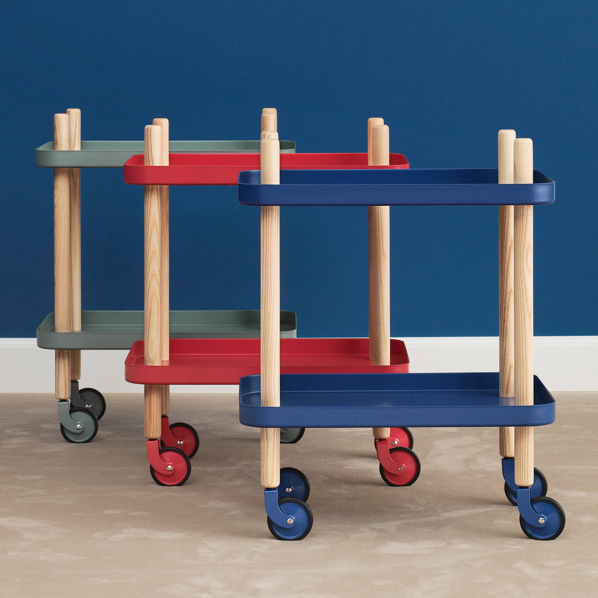 La table d’appoint mobile Block est disponible dans différentes versions couleurs.