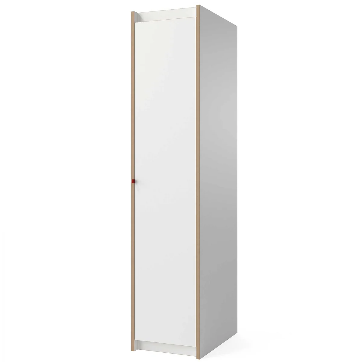 Le design convainc également : l'armoire se compose de MDF revêtu blanc, qui contribue à son aspect puriste. Les bords en MDF ressortent pour créer un contraste, de même que la poignée/sangle en PP rouge, qui attire irrésistiblement le regard. Grâce à sa conception sobre et intemporelle, l'armoire Debout peut être installée partout et est du plus bel effet aussi bien dans le couloir, dans la chambre d'enfants que, plus classiquement, dans la chambre à coucher.