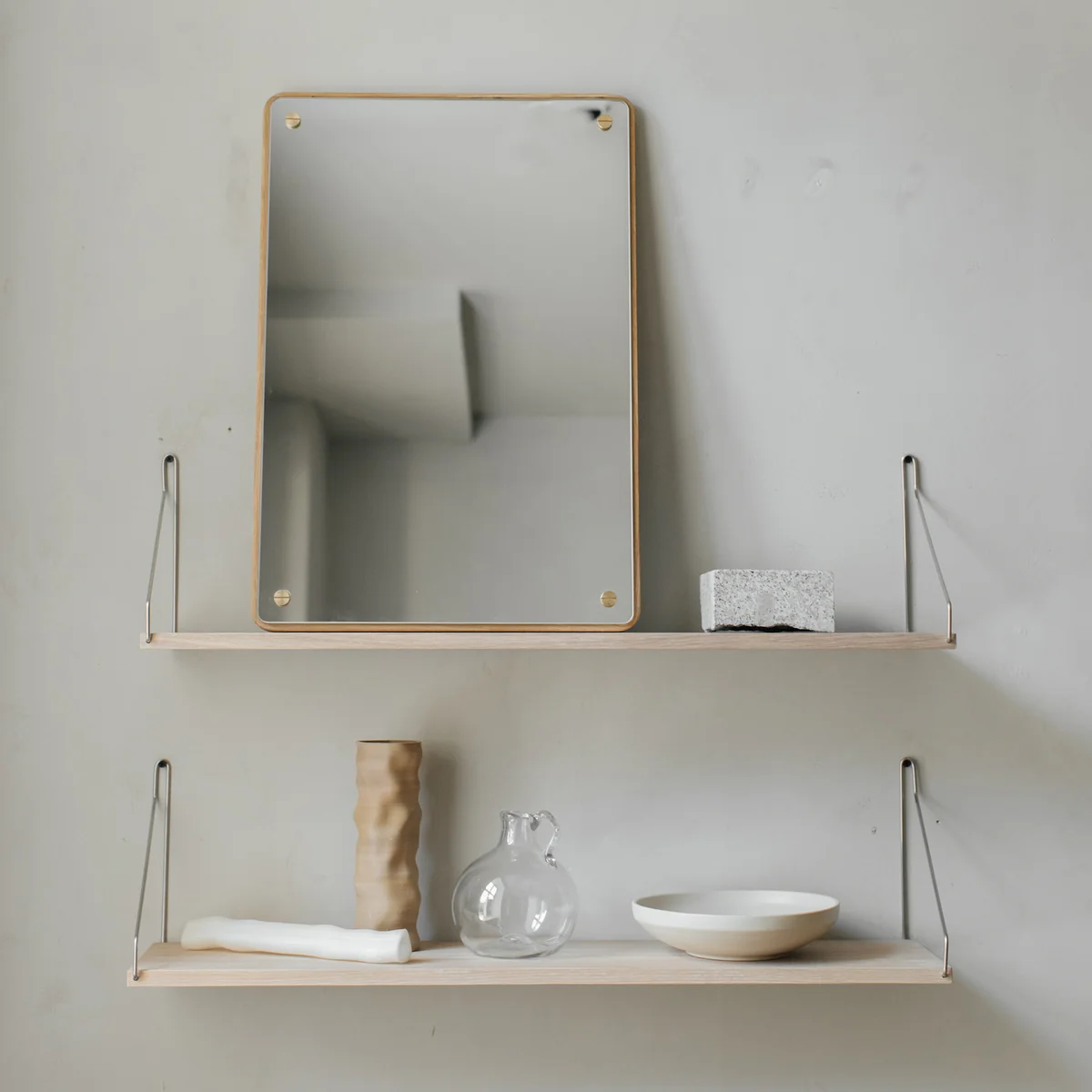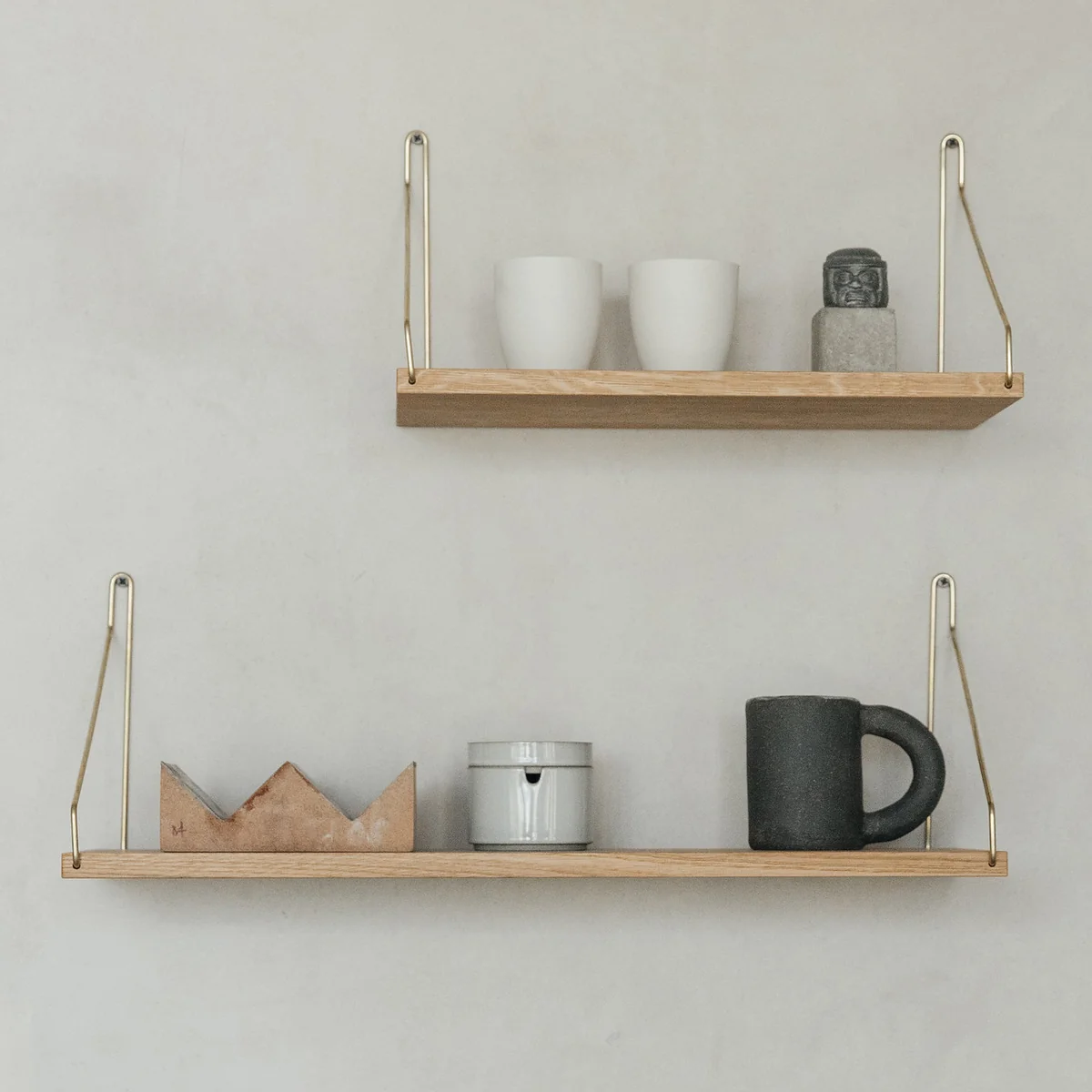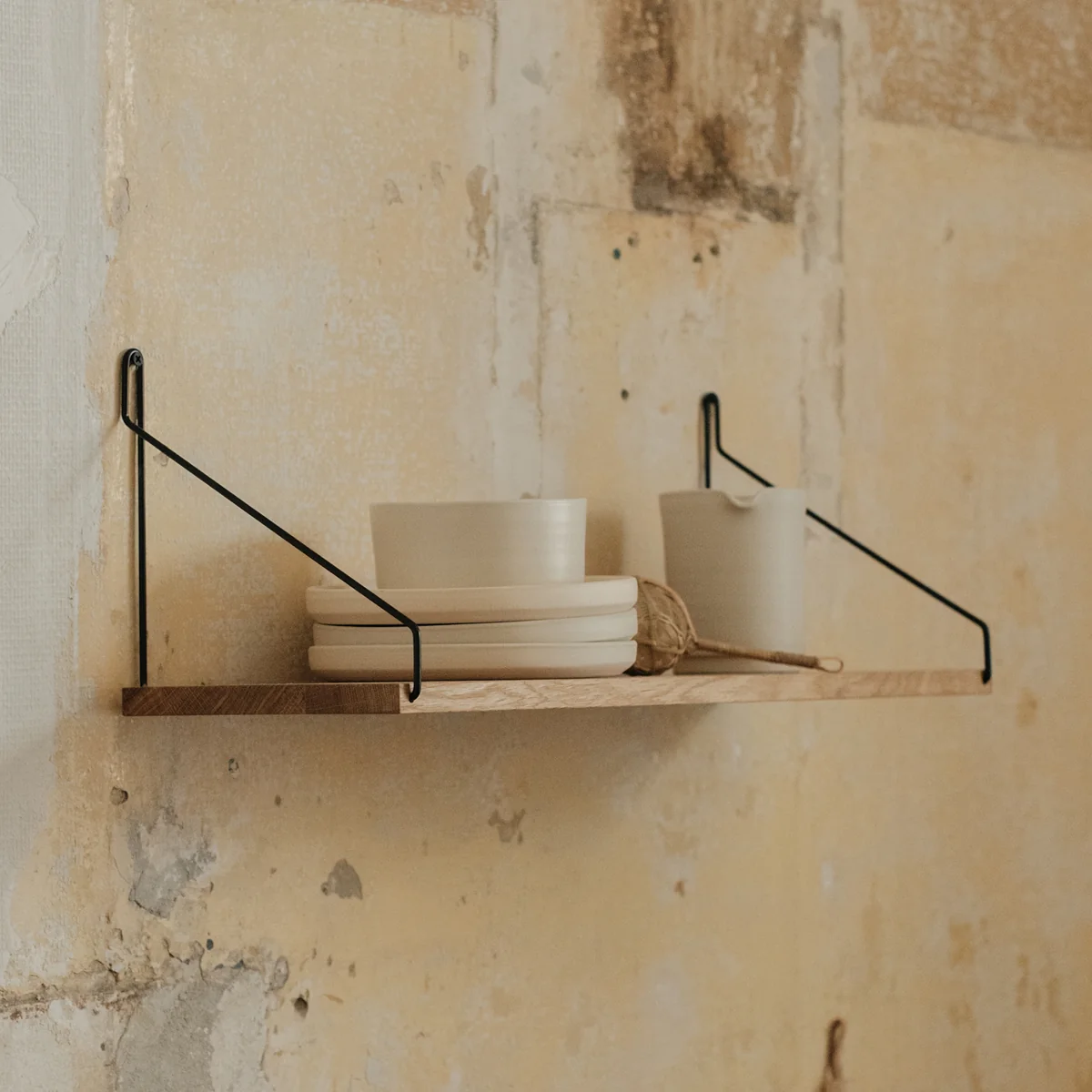 Le site Shelf de Frama est une étagère simple mais ingénieuse, inspirée du design scandinave classique des années 1950. Sans fioritures superflues, sans détours par la fantaisie ou les fioritures : la Shelf Une étagère murale retient ce qui est placé dessus. Grâce à son design universel, l'étagère convient à toutes les pièces sans exception - que ce soit le couloir, le salon, la chambre à coucher ou même la salle de bains. Livres, décoration, serviettes, clés, vêtements, épices, pots et bien d'autres choses encore peuvent être placés sur ce meuble minimaliste. Elle peut être combinée de manière optimale avec d'autres étagères.