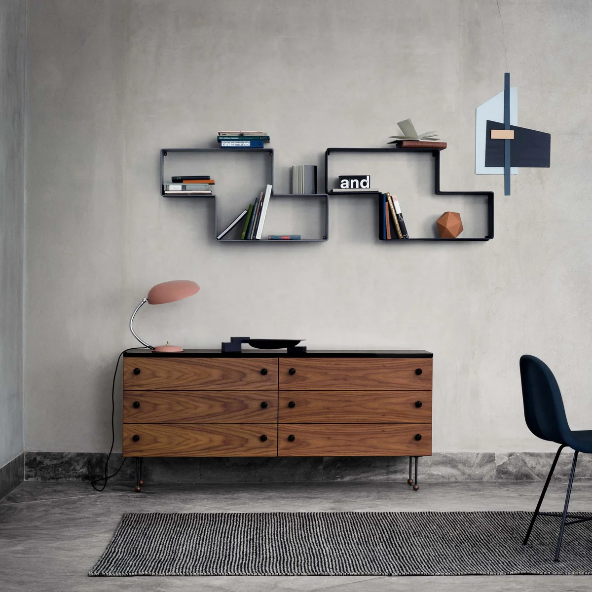 Si vous avez besoin de plus de place, vous pouvez facilement agrandir Dedal. Il vous suffit d'ajouter des éléments supplémentaires, à votre guise, comme vous l'entendez. Du fait de cette flexibilité et de cette liberté révolutionnaires, les meubles de Mathieu Matégot sont encore de nos jours de véritables icônes en termes de fonctionnalité.
