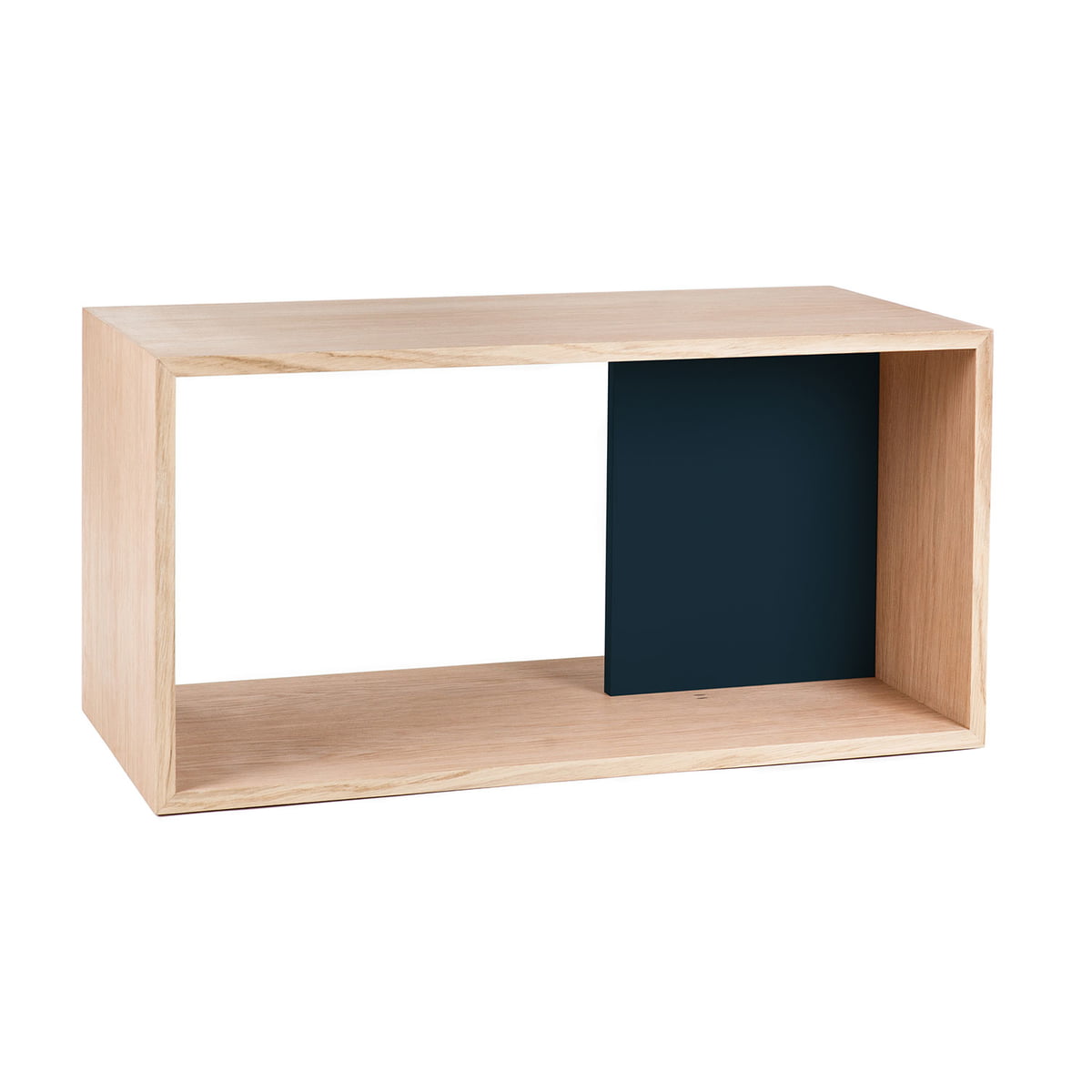 La base du système d'étagères est une boîte en MDF plaqué chêne, équipée d'une plaque intérieure laquée mat en différentes couleurs. Les modules peuvent être assemblés entre eux verticalement ou en diagonal par un système de montage simple. Les modules s'enfichent à l'aide de connexions en laiton et peuvent ainsi être démontés tout aussi facilement. Grâce à ce système de fixation, Edgar peut passer d'une simple boîte à un buffet ou à une bibliothèque et revenir à une boîte en quelques minutes seulement.