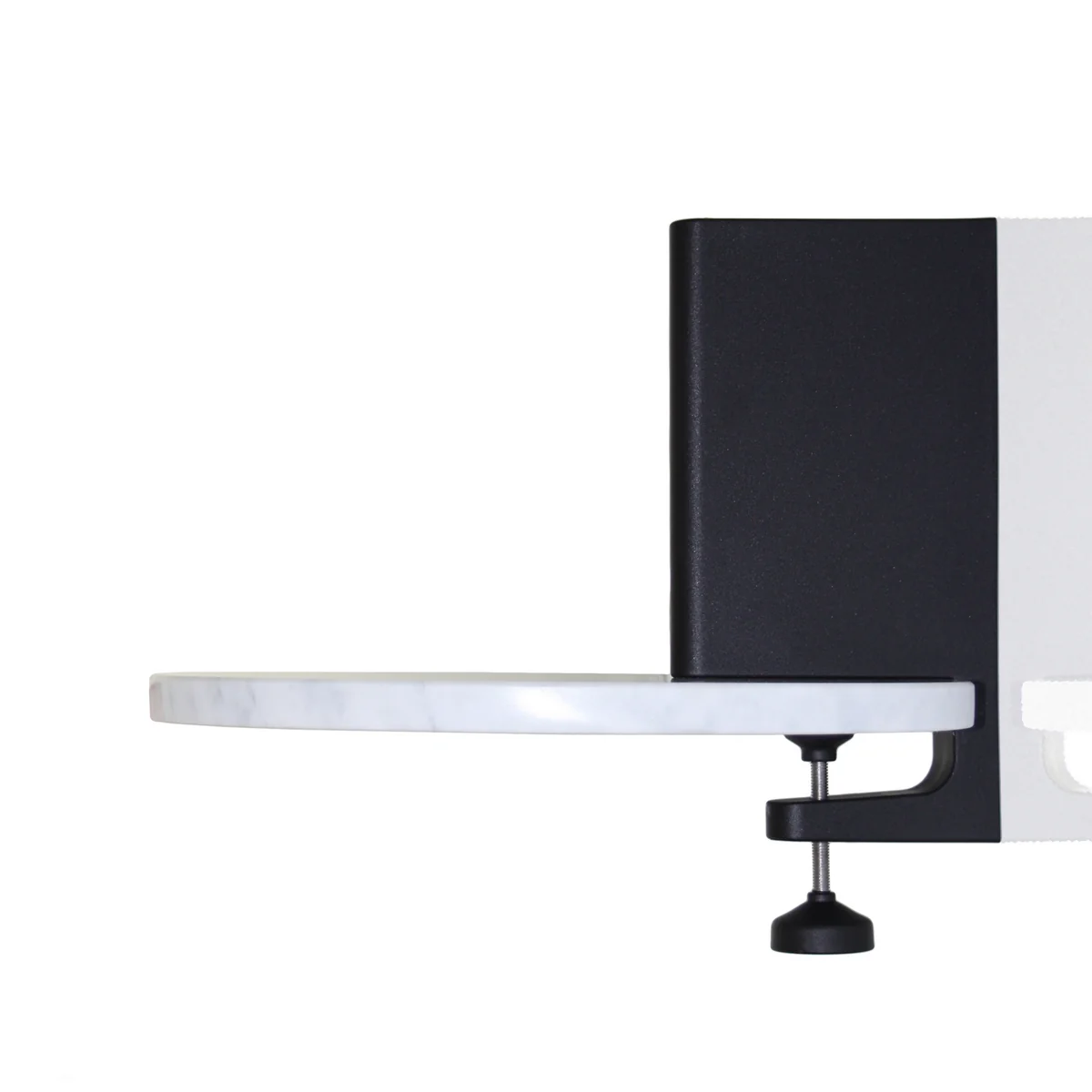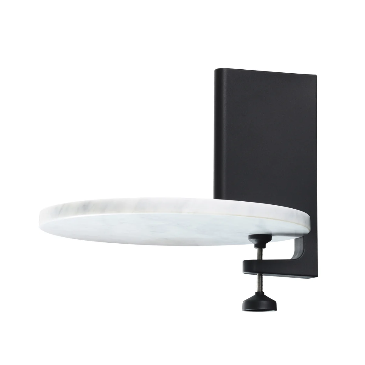 Avec son support mural à pinces en polypropylène renforcé en fibres de verre, Spike accueille différentes étagères pouvant être tout simplement coincées entre les supports semblables à deux étaux. Avec diverses étagères, (en acier ou en bois de hêtre), Spike ne peut plus nier son origine industrielle et est une base très solide avec sa capacité de charge de 40 kg. La tablette ronde en marbre apporte encore plus d'élégance.