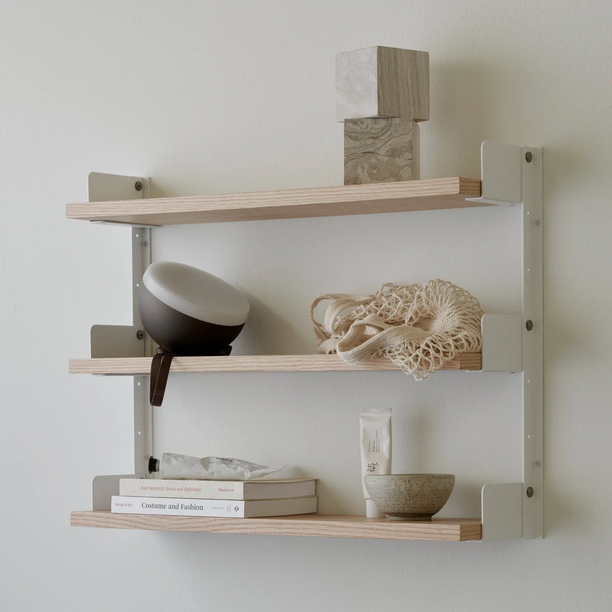 Le Tea étagère murale de New Works est la solution parfaite pour un rangement stylé et fonctionnel. Avec ses détails discrets et ses possibilités d'utilisation flexibles, l'étagère s'intègre parfaitement dans tout environnement et incarne la recherche continue de New Works pour des basiques de qualité. Chaque élément de l'étagère, des angles précis des supports muraux aux serre-livres intégrés, a été soigneusement pensé pour que vos objets soient placés en toute sécurité. Les étagères sont montées à l'aide de vis plates et moletées en acier inoxydable, ce qui confère au design une touche à la fois honnête et raffinée. Le Tea L'étagère murale est un système évolutif qui s'adapte aux différents besoins de rangement - un investissement dans le style et la fonctionnalité pour votre maison.