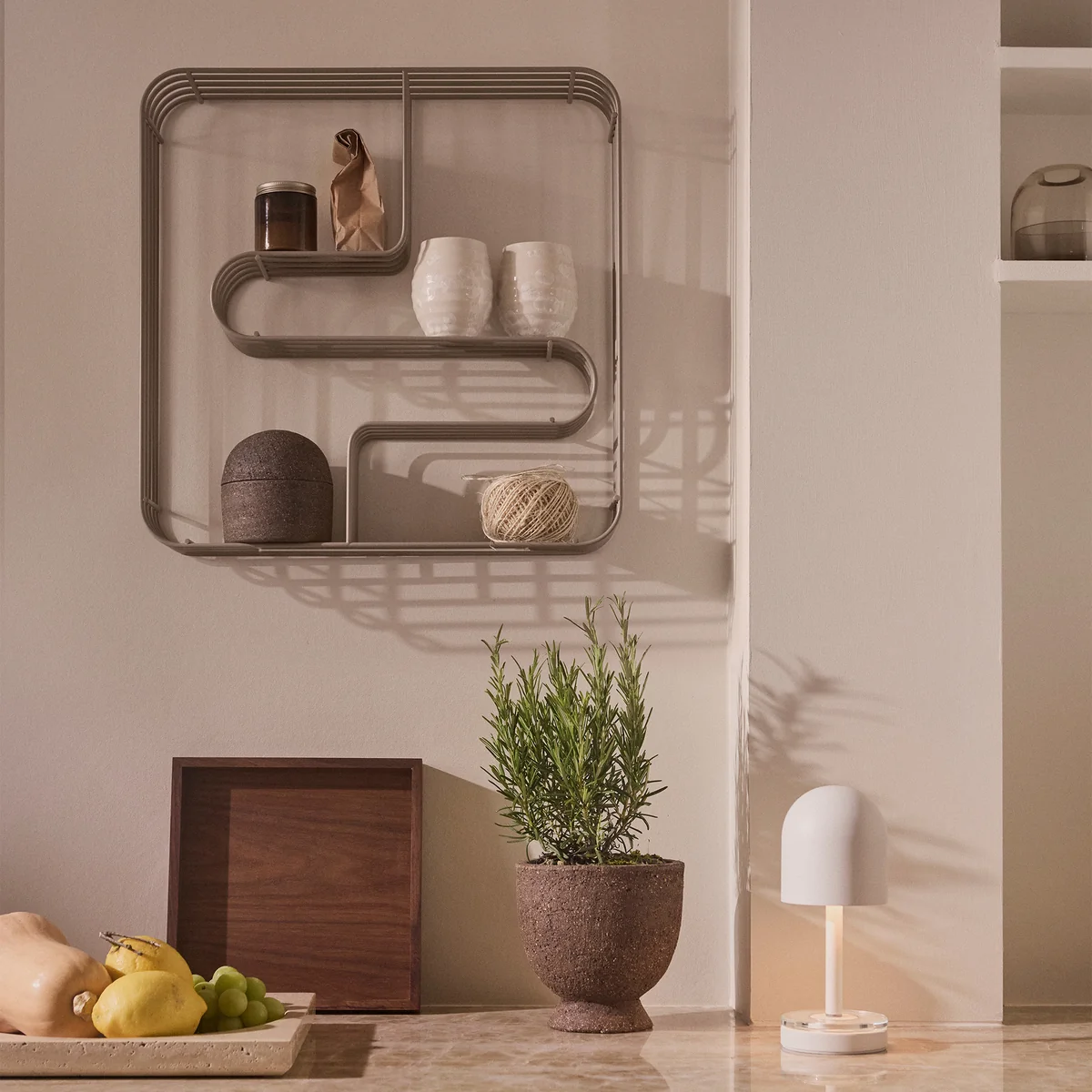 Le site Curva étagère murale de AYTM est une décoration murale d'un genre particulier. L'étagère est fabriquée à partir de barres de fer individuelles qui se juxtaposent de manière courbée et qui, vues de face, ont presque une forme elliptique. L'aspect général est léger et aérien et s'intègre parfaitement dans n'importe quelle ambiance.