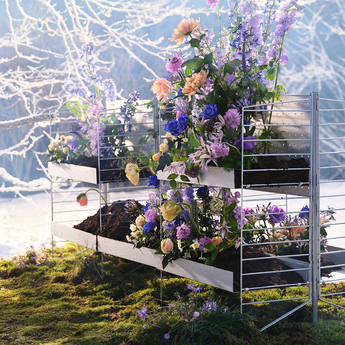 En 2019, String ouvre ses portes et fait un pas vers l'extérieur. Désormais, le jardin, le balcon et la terrasse peuvent également être équipés et aménagés avec les systèmes d'étagères emblématiques de String. La particularité : les systèmes d'étagères pour l'extérieur de String n'ont pas besoin de quatre murs et ne sont pas non plus limités par un plafond. Il est donc possible de laisser libre cours à sa créativité.