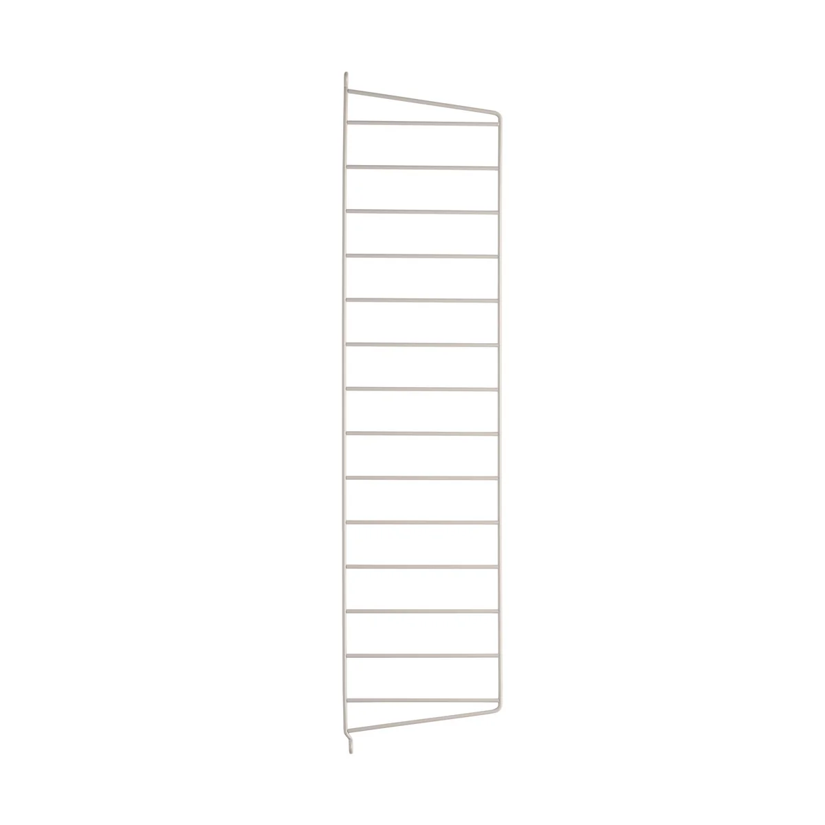 Le système d'étagères mural String est disponbile dans une profondeur de 20 et 30 centimètres. La dernière variante de ce système est "Echelle de Mur - et sol " possèdant des appuis forts et solides. Les étagères sont disponibles dans les deux profondeurs indiquées précédemment et des longueurs différentes.