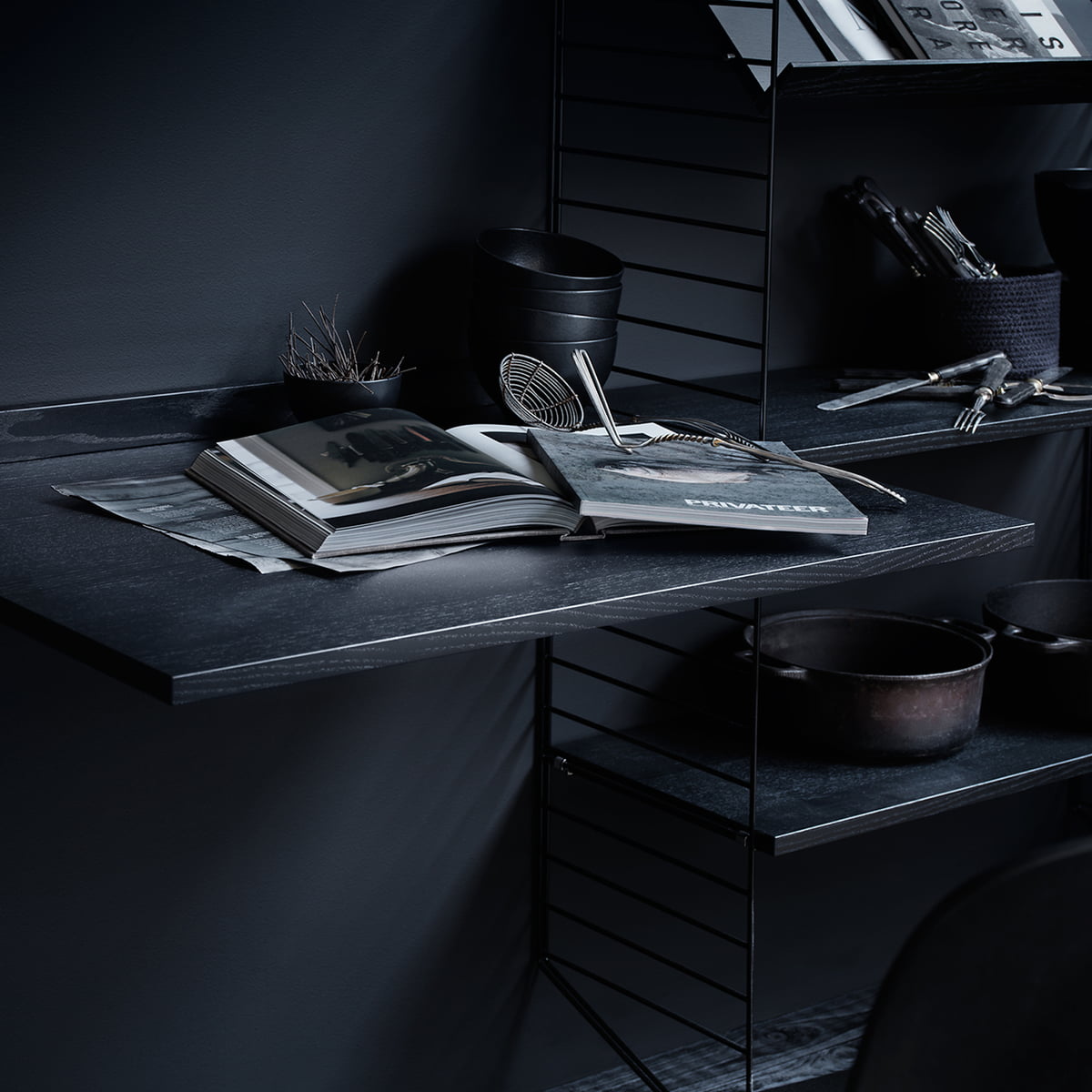 Schwarz in Schwarz: das String Regalsystem im edlen Look