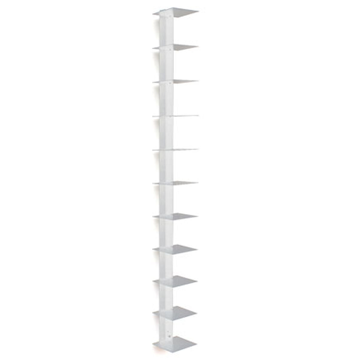 Cette étagère ressemble à une haute pile de livre suspendue au mur, grâce à ses fines étagères vous pouvez facilement retirer le livre que vous souhaitez.