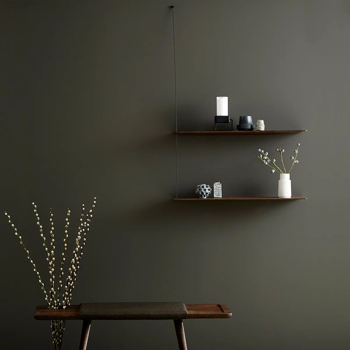 Le support mural Stedge de Woud est généralement livré avec deux planches et peut être étendu en option par des niveaux supplémentaires. L'étagère murale devient ainsi un espace de rangement conçu individuellement dans l'espace de vie.